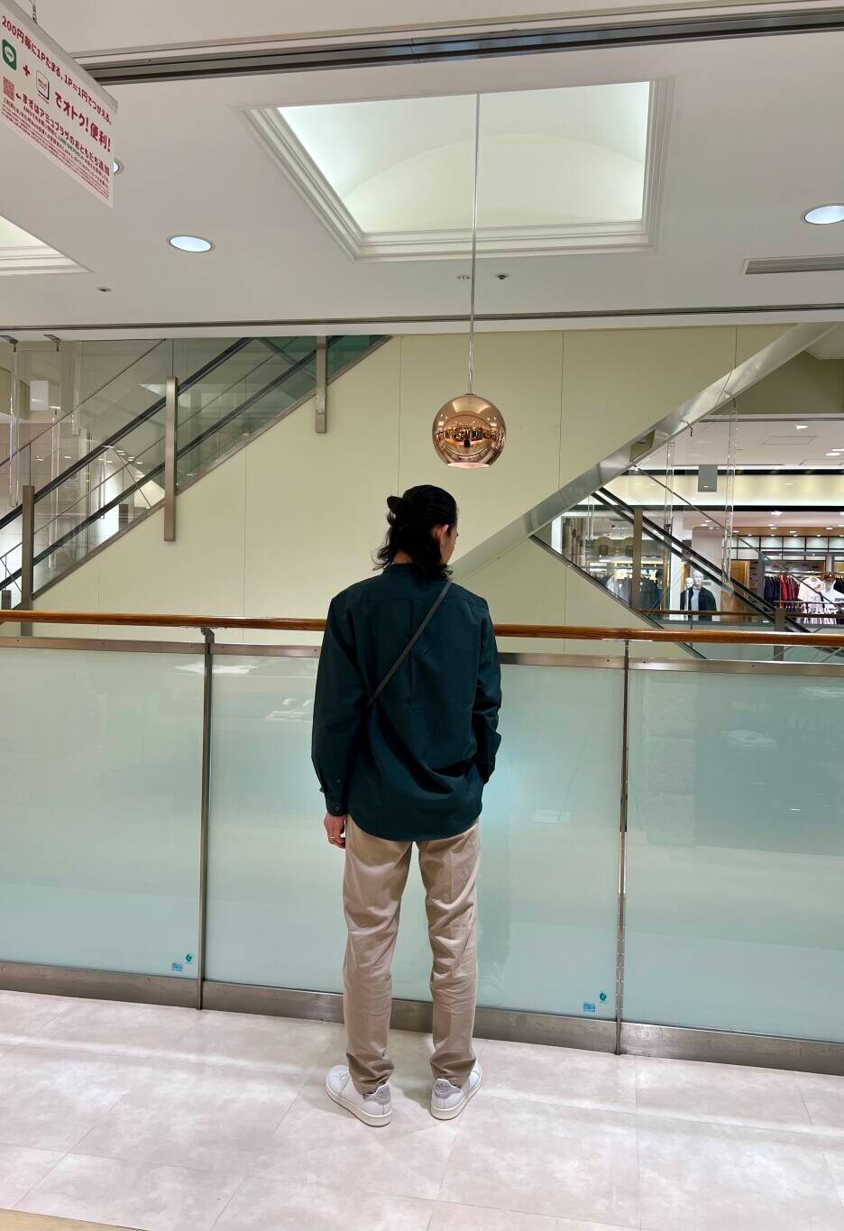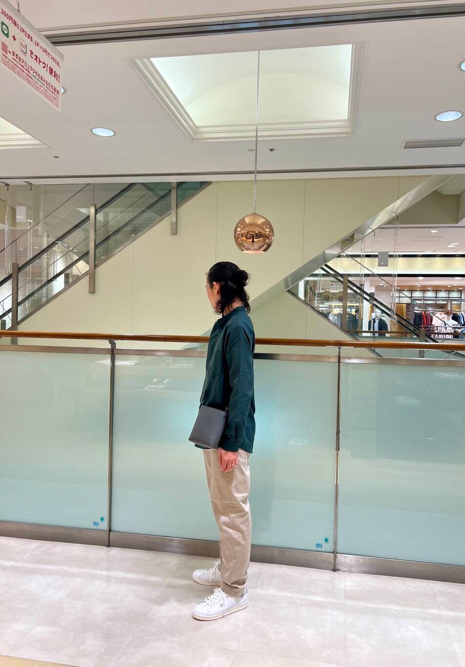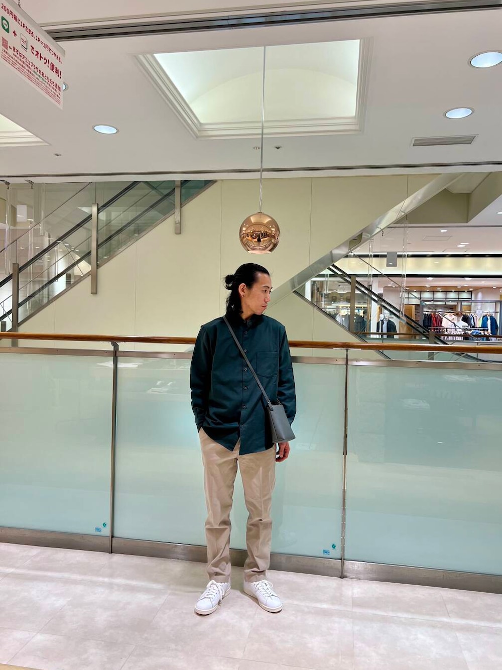 チノテーパードトラウザーはストレッチ性がある穿きやすさ抜群で、キレイ目からカジュアルなアイテムまで合わせるものを選ばないです!