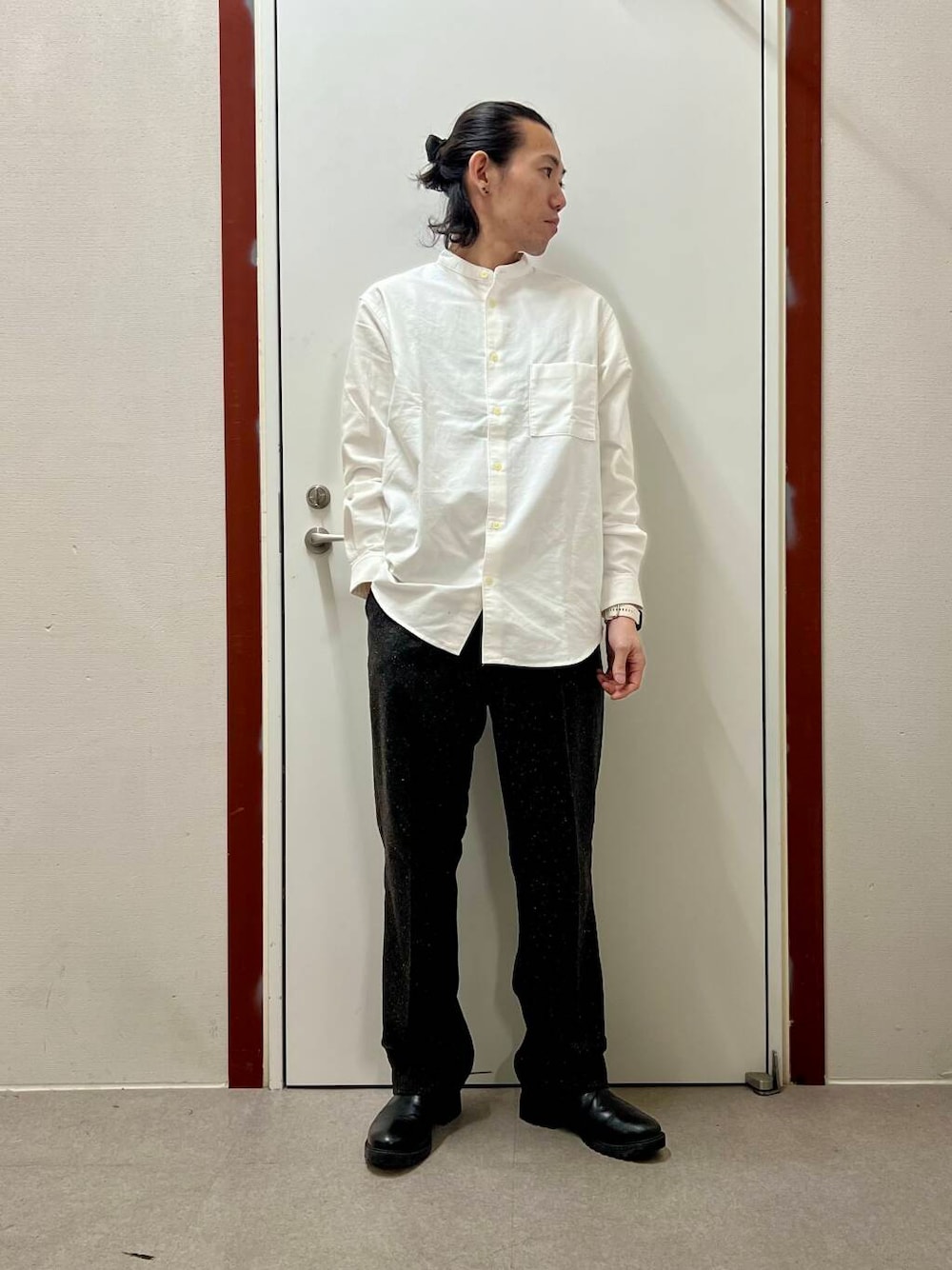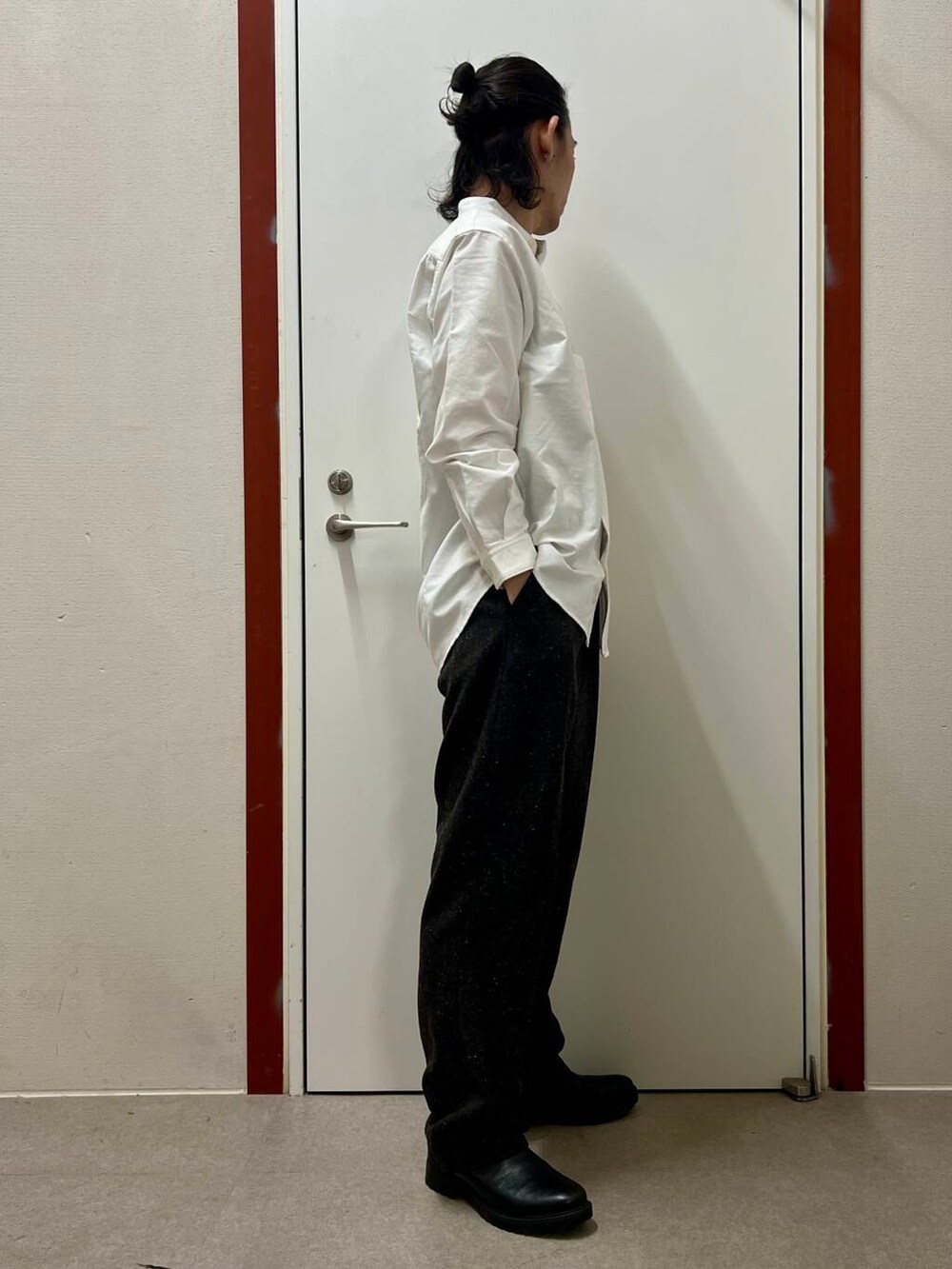 ウールブレンドネップワンタックパンツはウール混なので柔らかな肌触りで暖かく着れるので、秋口から冬場まで長く着れます!