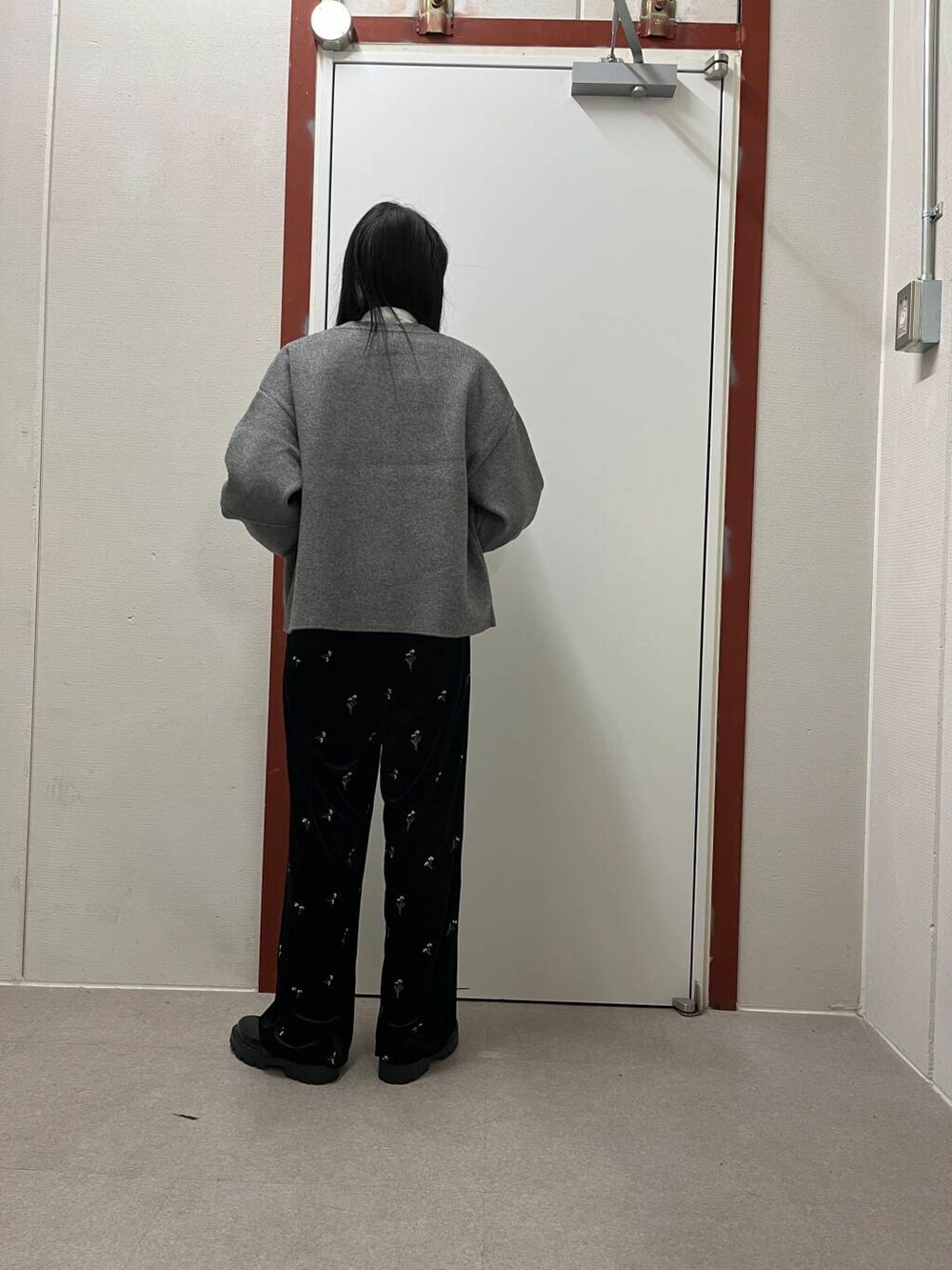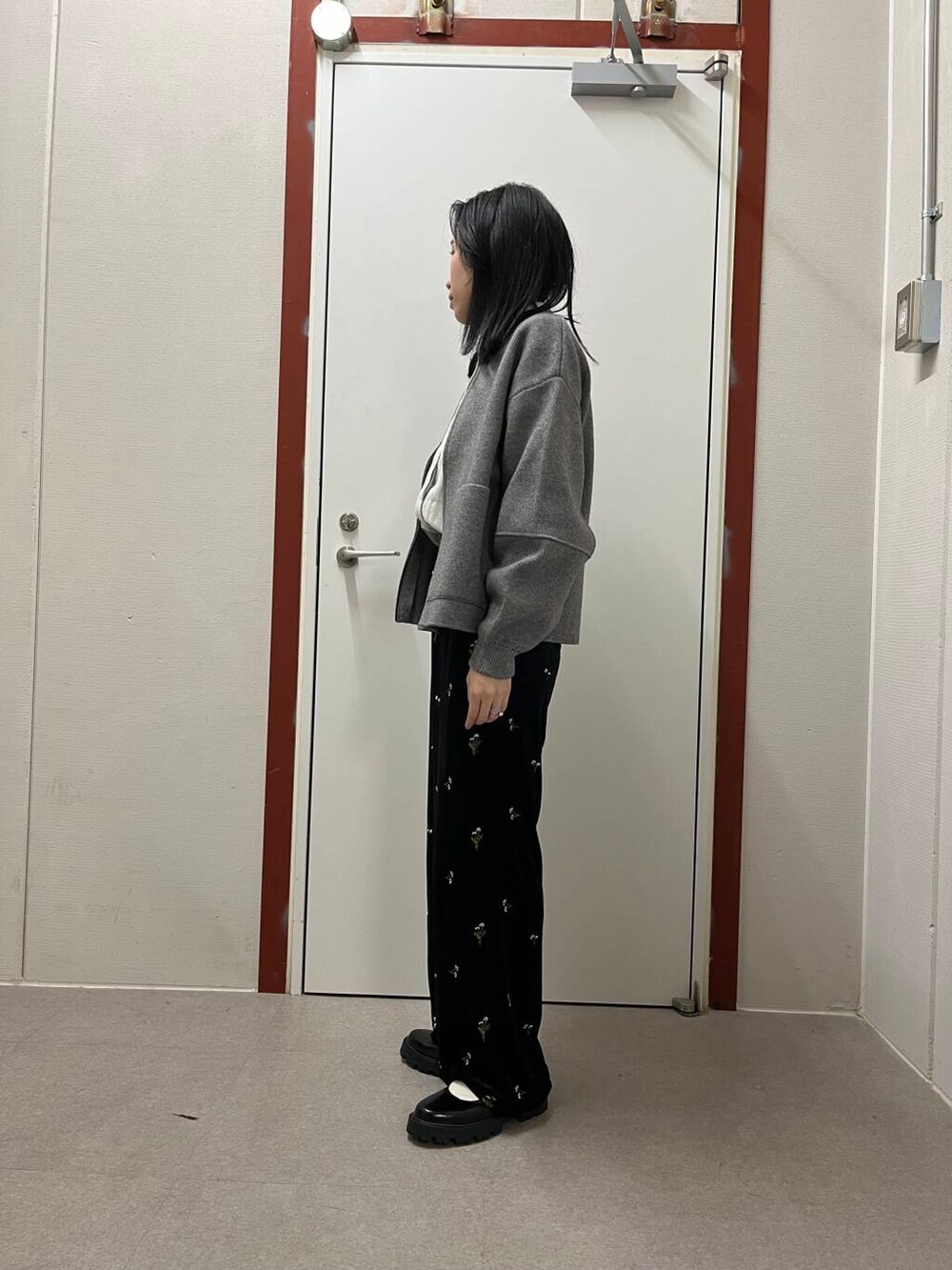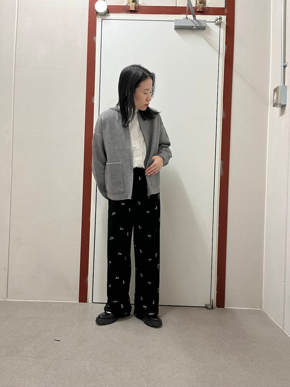 ベロアパンツを合わせて