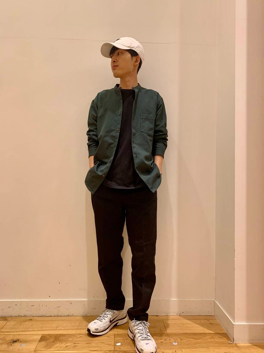 Sサイズを着用で今回はロールアップ無しで合わせました。テーパードしているのでまとまりが良くスニーカーとの相性がいいと思いました。