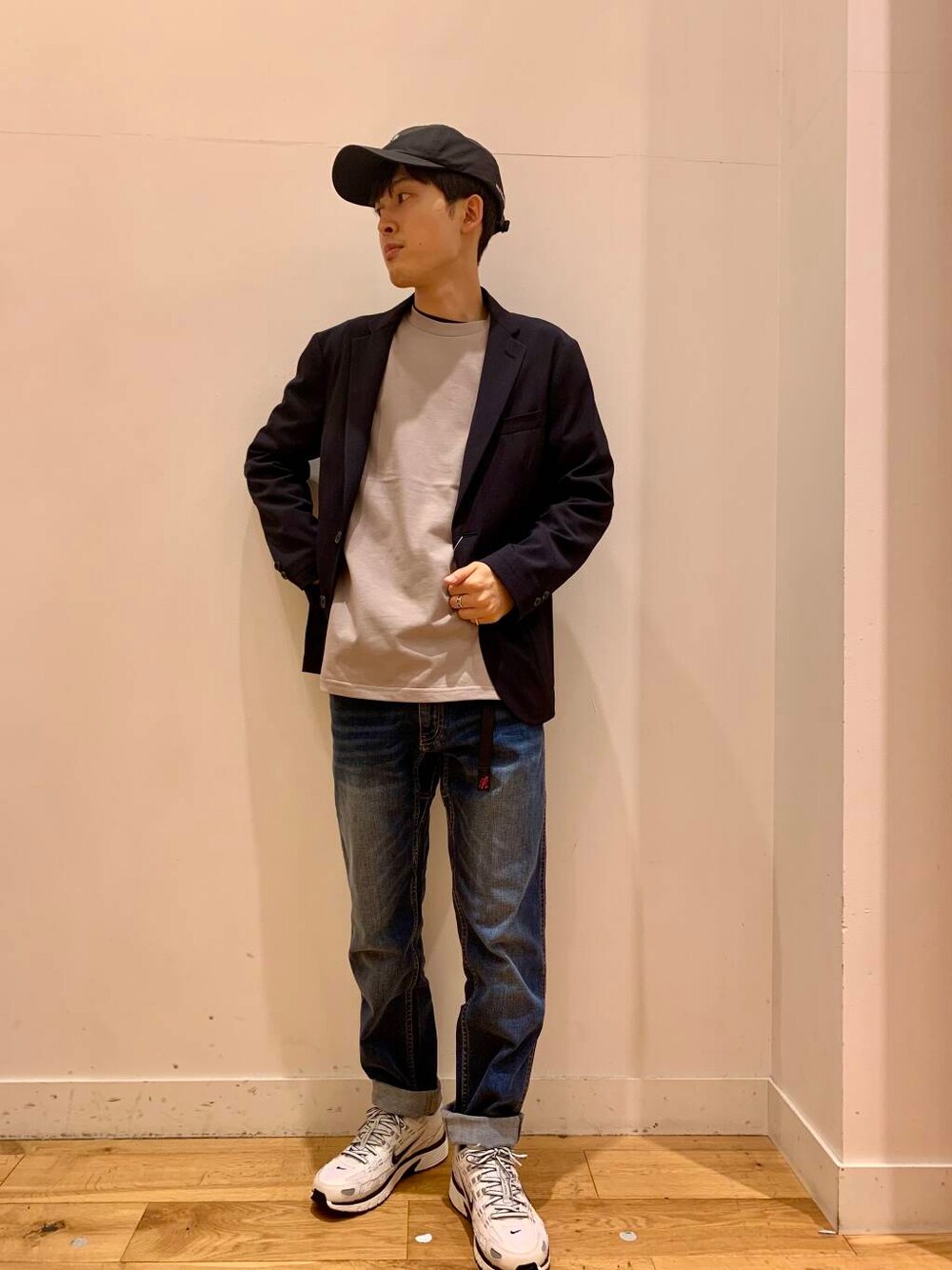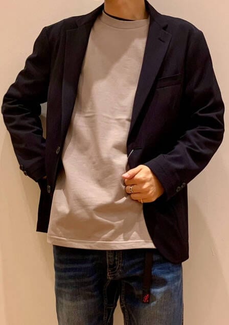 カジュアルスタイルにジャケットを羽織るだけで綺麗目に、また締まって見えます。