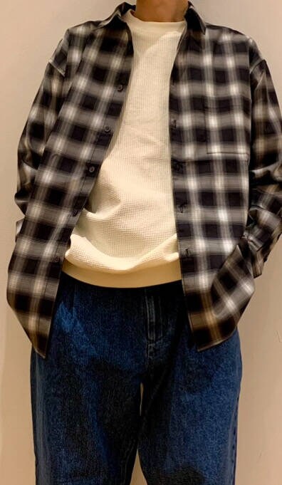 シルエットはワイドです。丈はロールアップして調整してもいいのでこれからの季節革靴などと合わせてもオシャレにつかっていただけます。