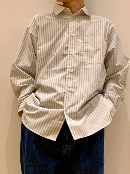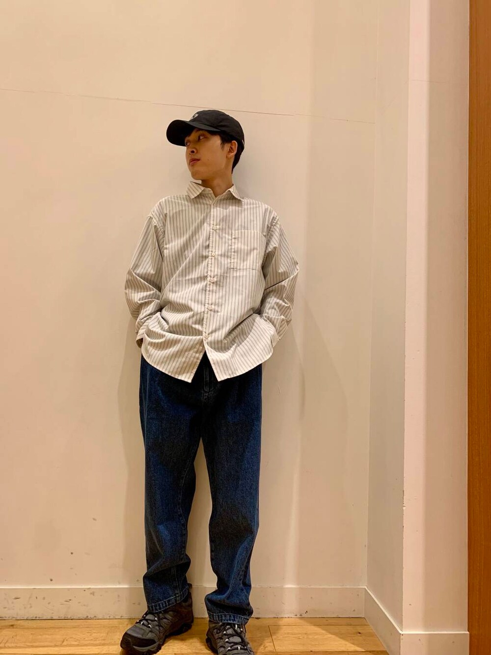 トップスはこれからの季節に最適な長袖シャツです。袖を少し捲ったり羽織にしたりと使い勝手が良く気温の変化にうまく合わせられます。