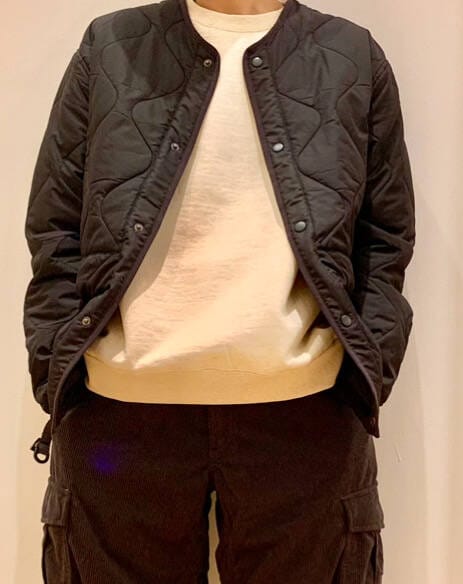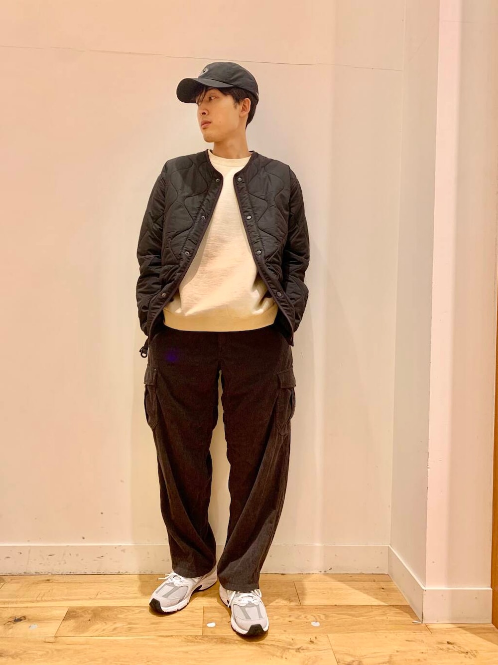 パンツは薄めの生地感で細畝のコーデュロイです。季節感を出しつつも涼しく着用できます。アウターはとても軽く秋から冬にかけて取り扱いやすいです。
