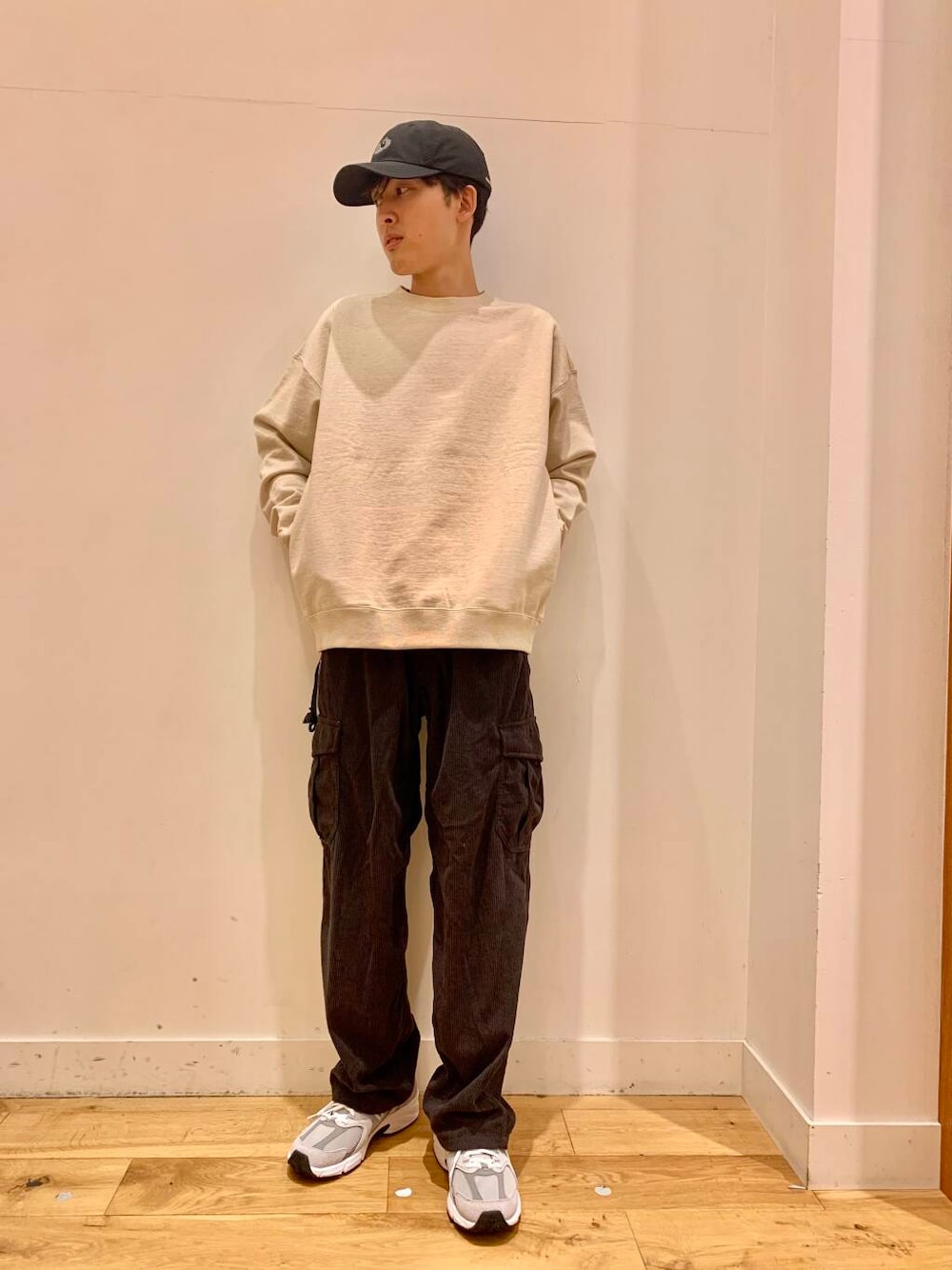 全体的にワイドなサイズ感で合わせやすいコーディネートです。