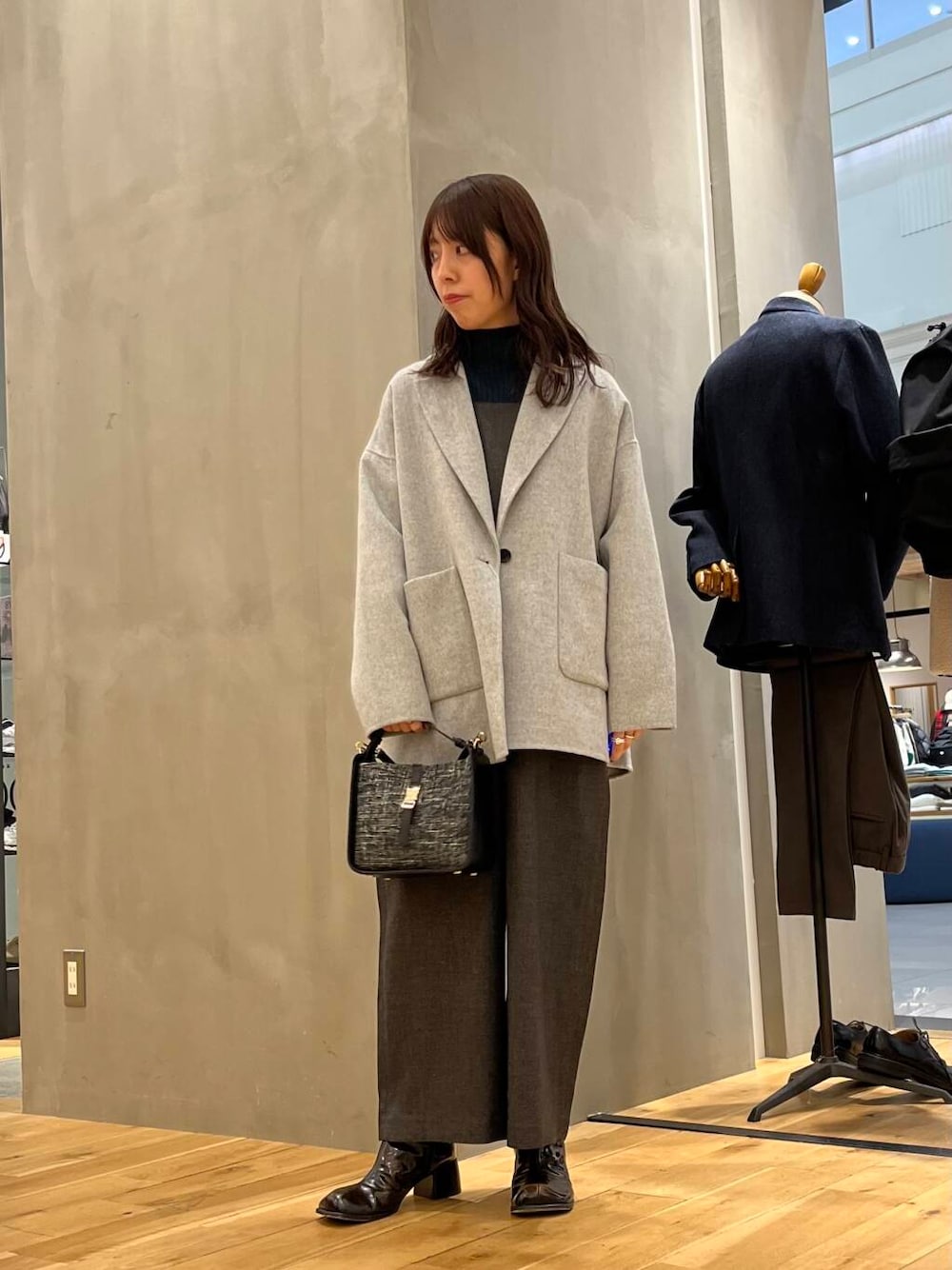 ツイードのような生地でスッキリとしたシルエットなのでカジュアルになりすぎず着ていただけます!