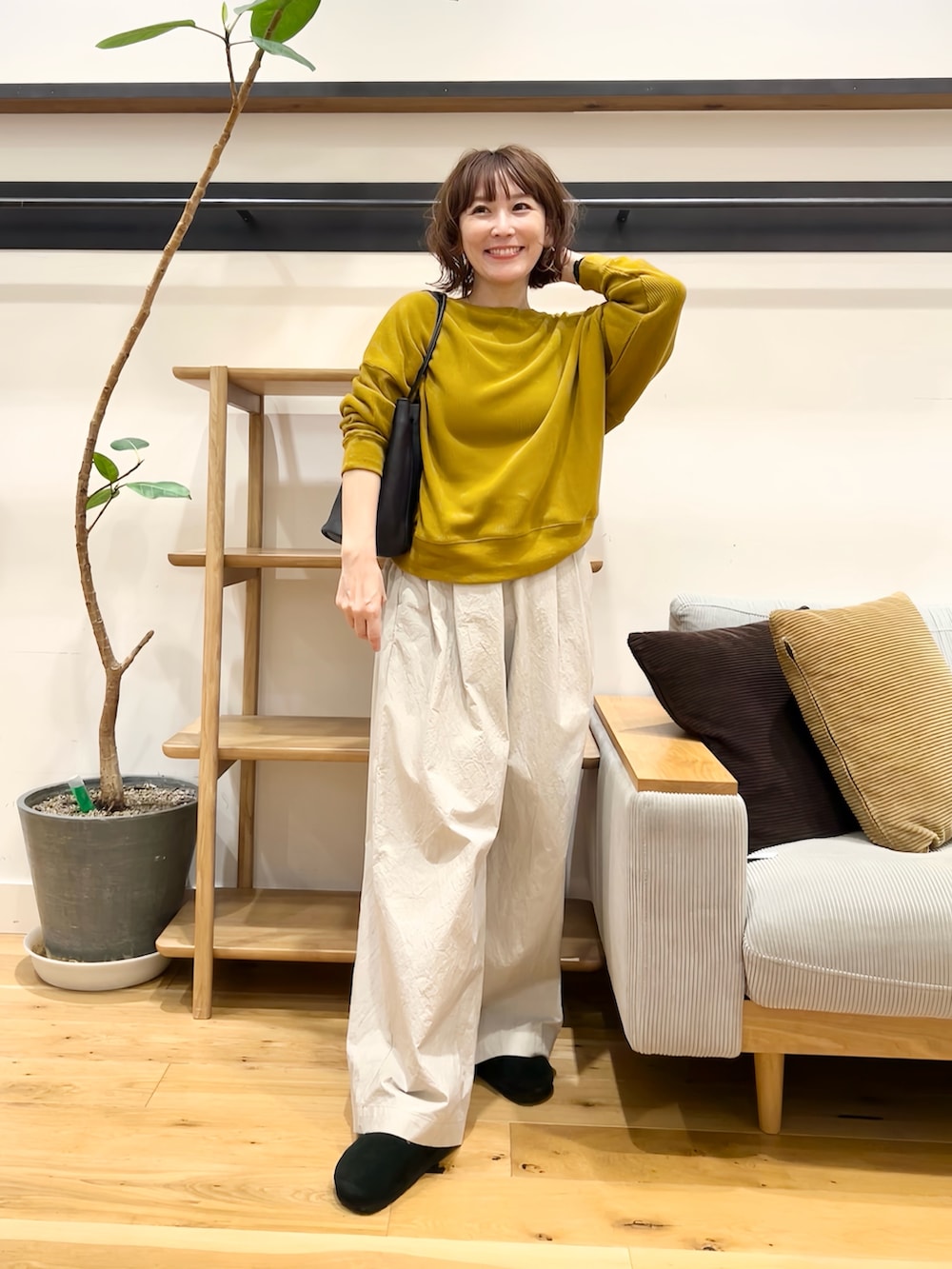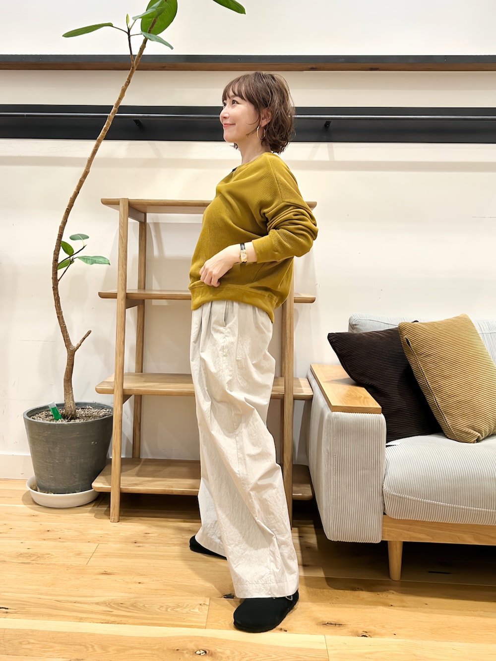 👖強風にあおられ日光に照らされ職人さんに染められ、はるばるかぐれまでやってきたコットン2タックイージーパンツ。