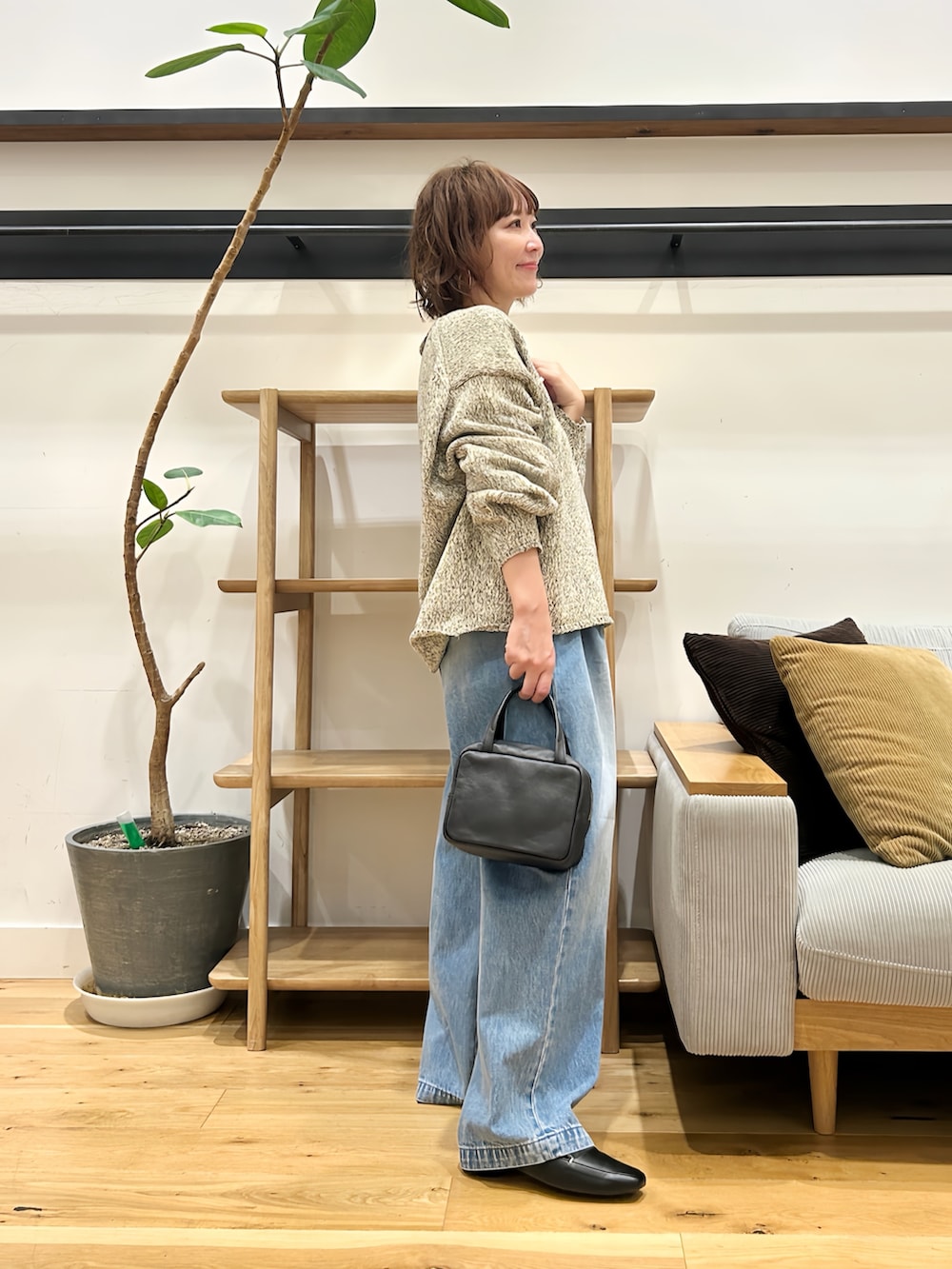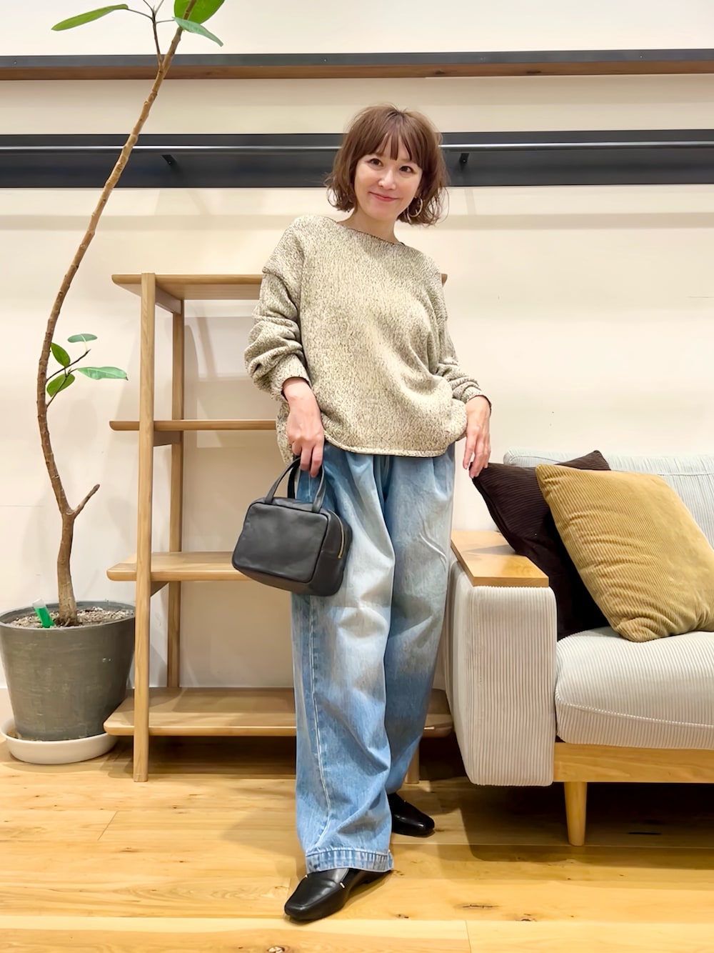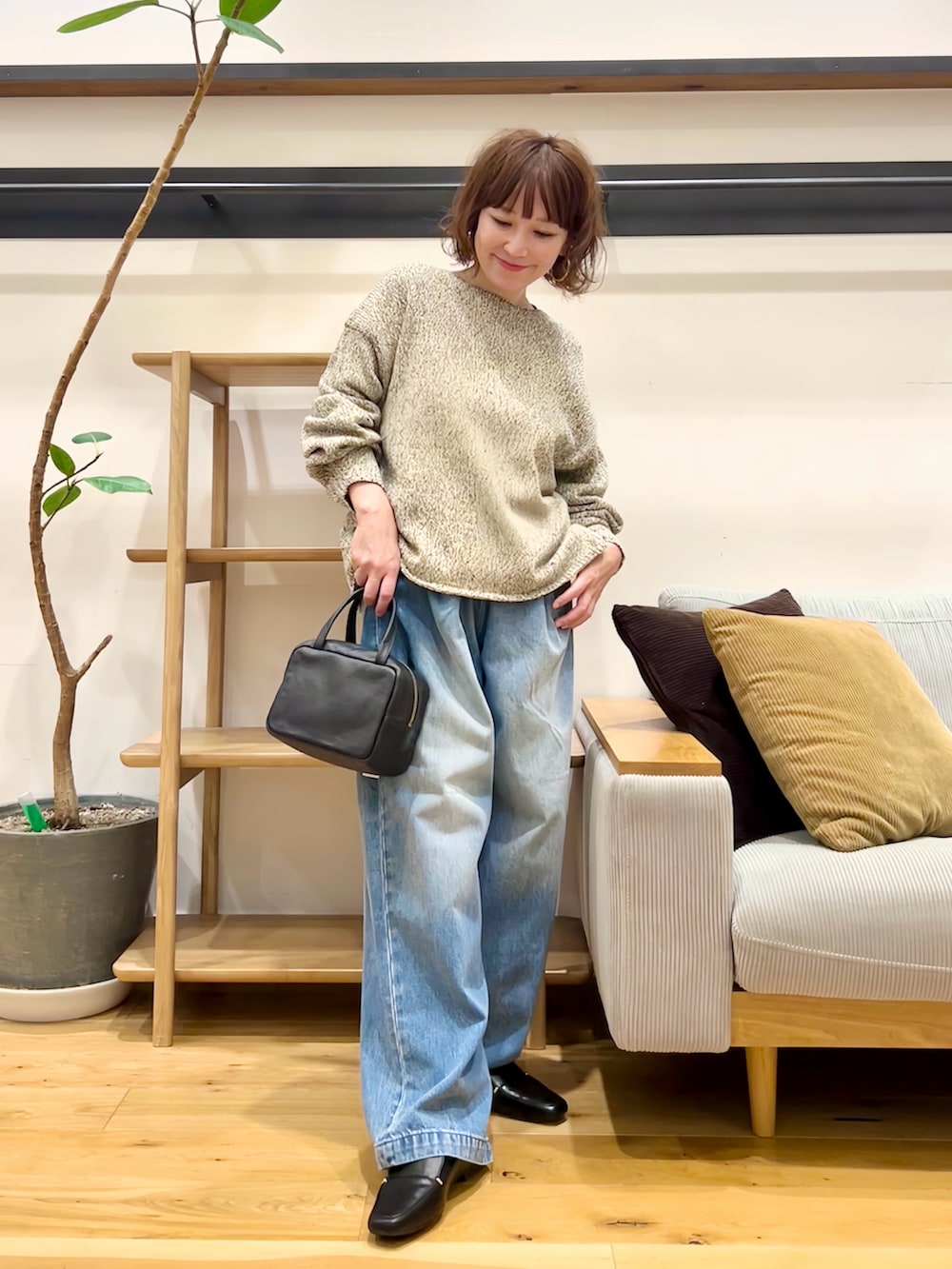 少し広めのボートネックと落ち感のあるシルエットで、ラフに着てもどこか上品な雰囲気。デニムでカジュアルにも、スカートで女性らしくも合わせられます。