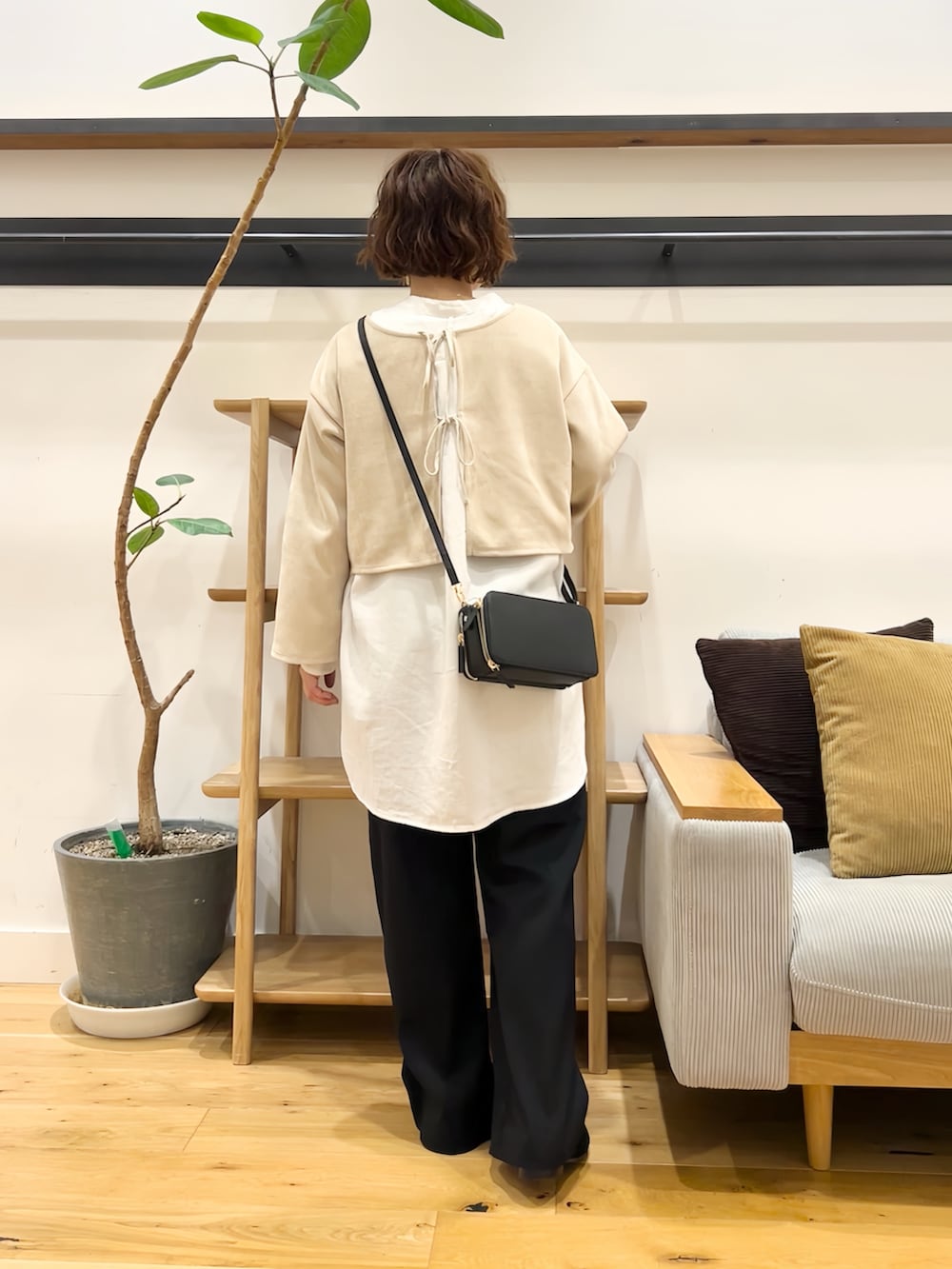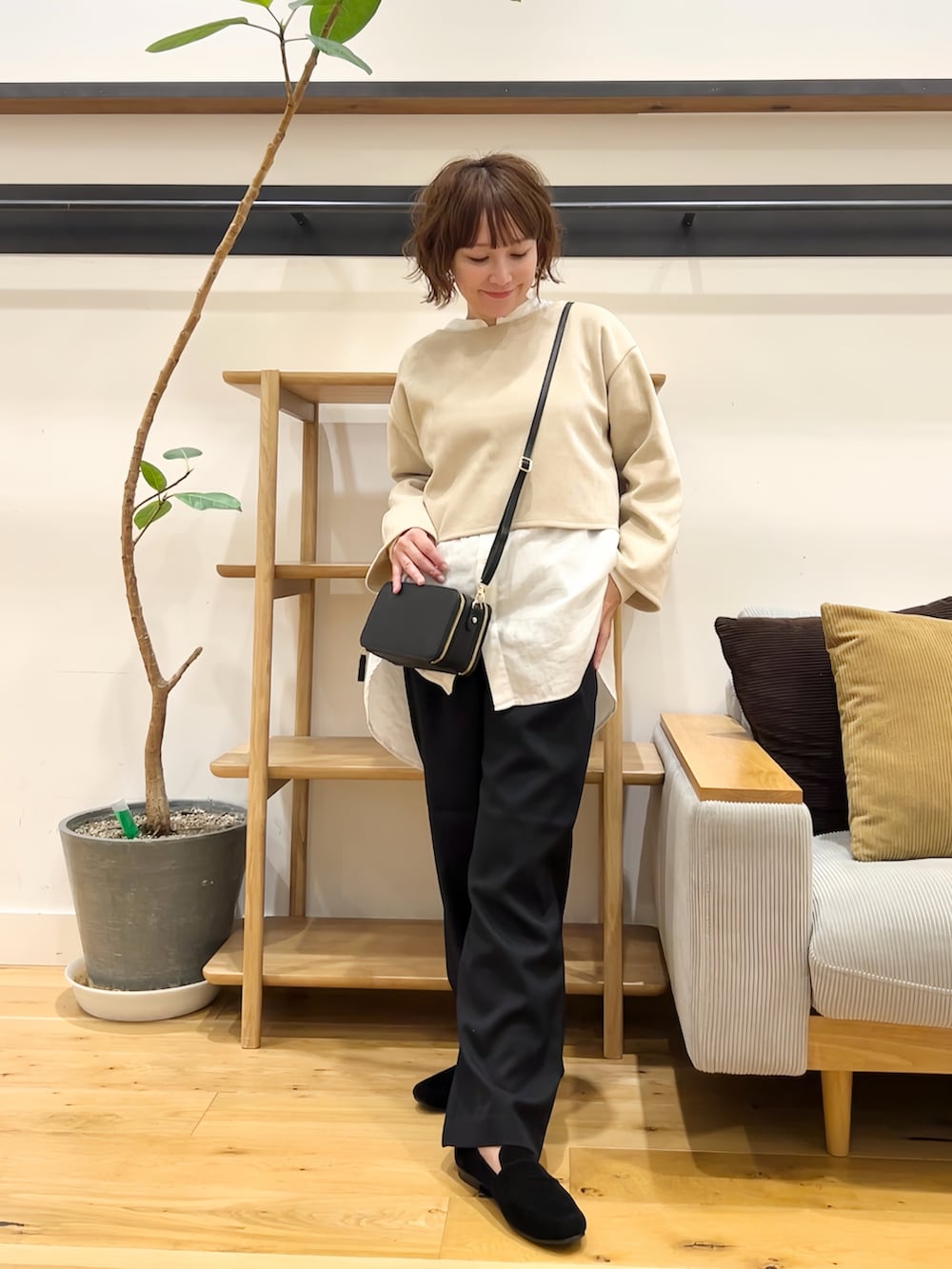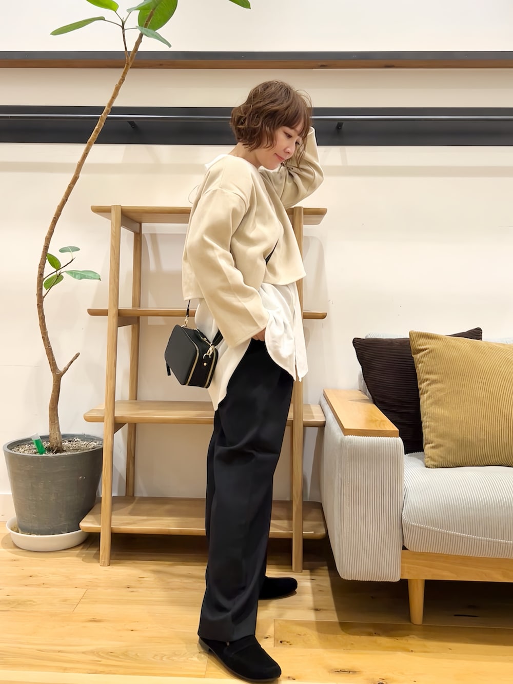 ショート丈なのでハイウエストのパンツやスカートとも相性抜群です。