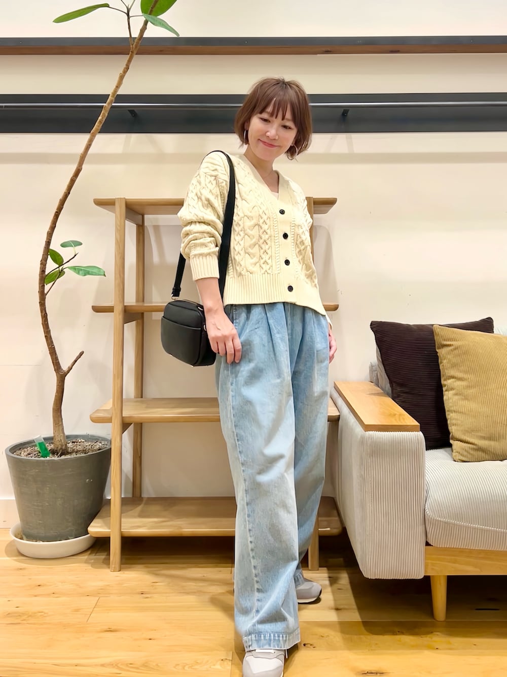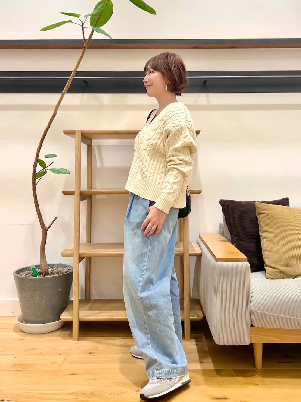 短めの着丈なので、ワイドパンツやスカートともバランスが取りやすくなってます◎