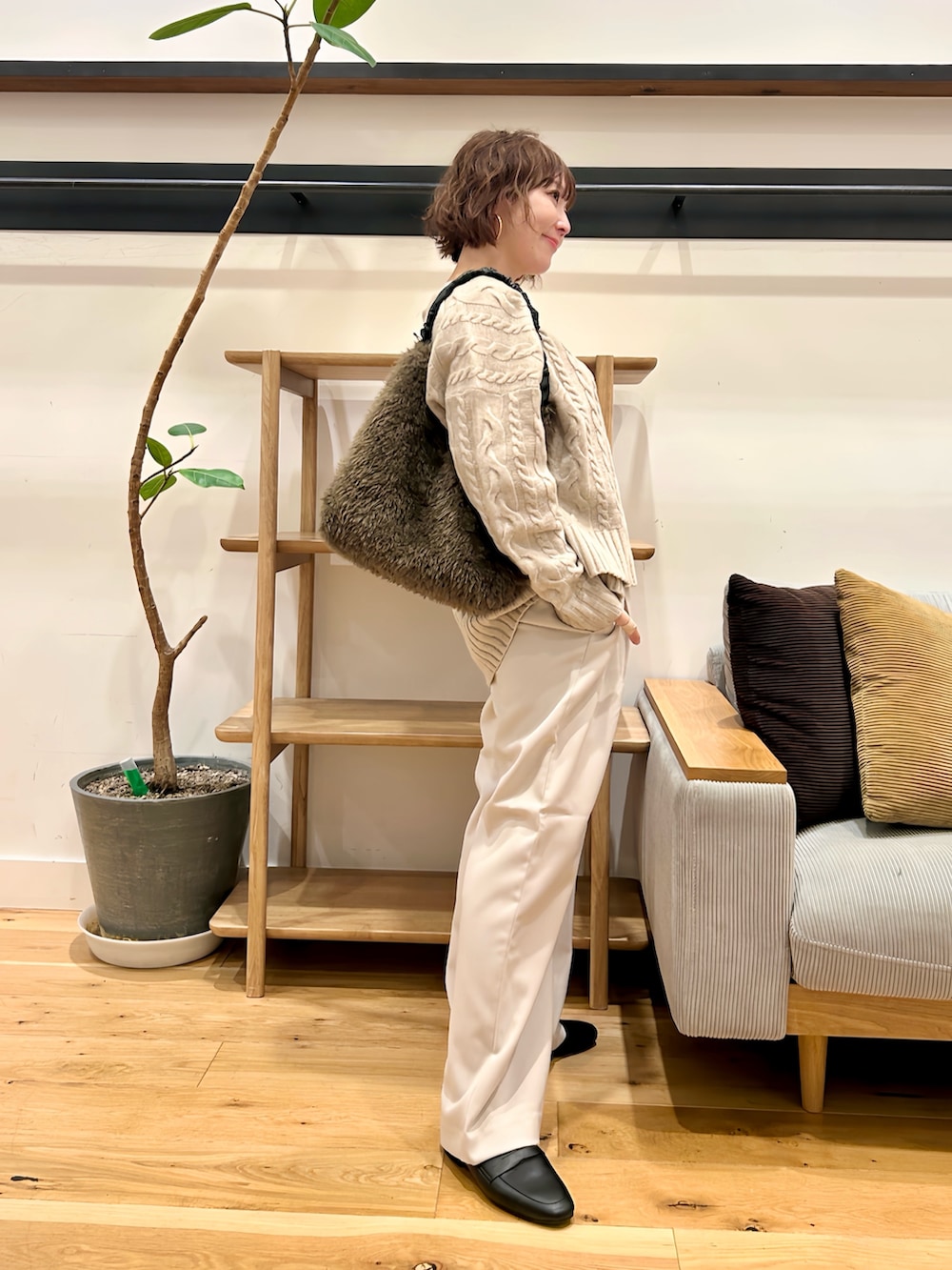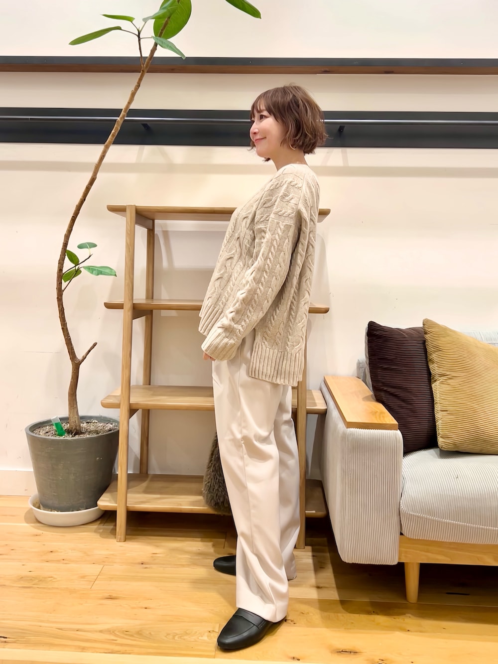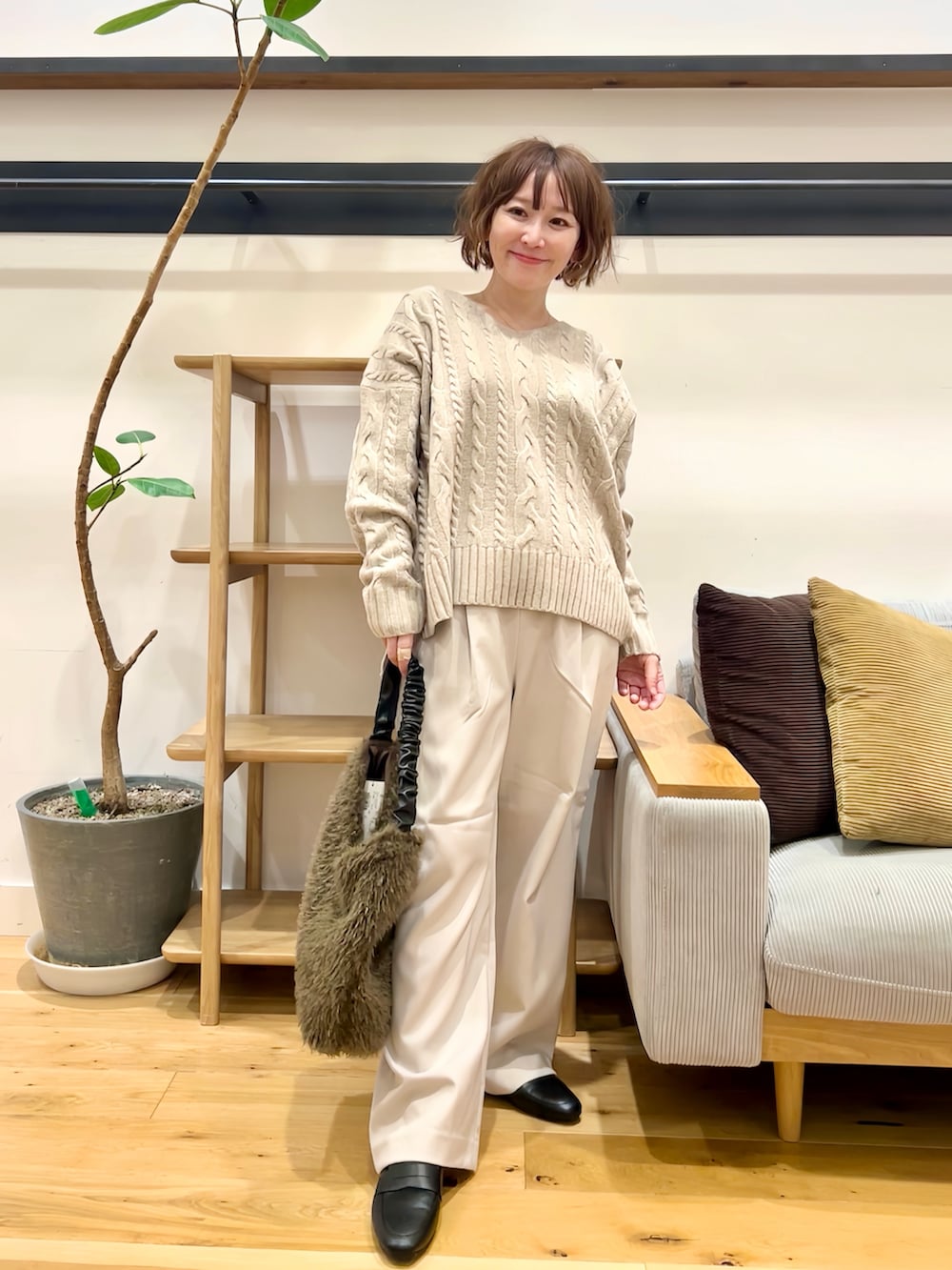 顔まわりを明るく見せてくれるベージュは合わせやすく秋冬のコーデにぴったりです。