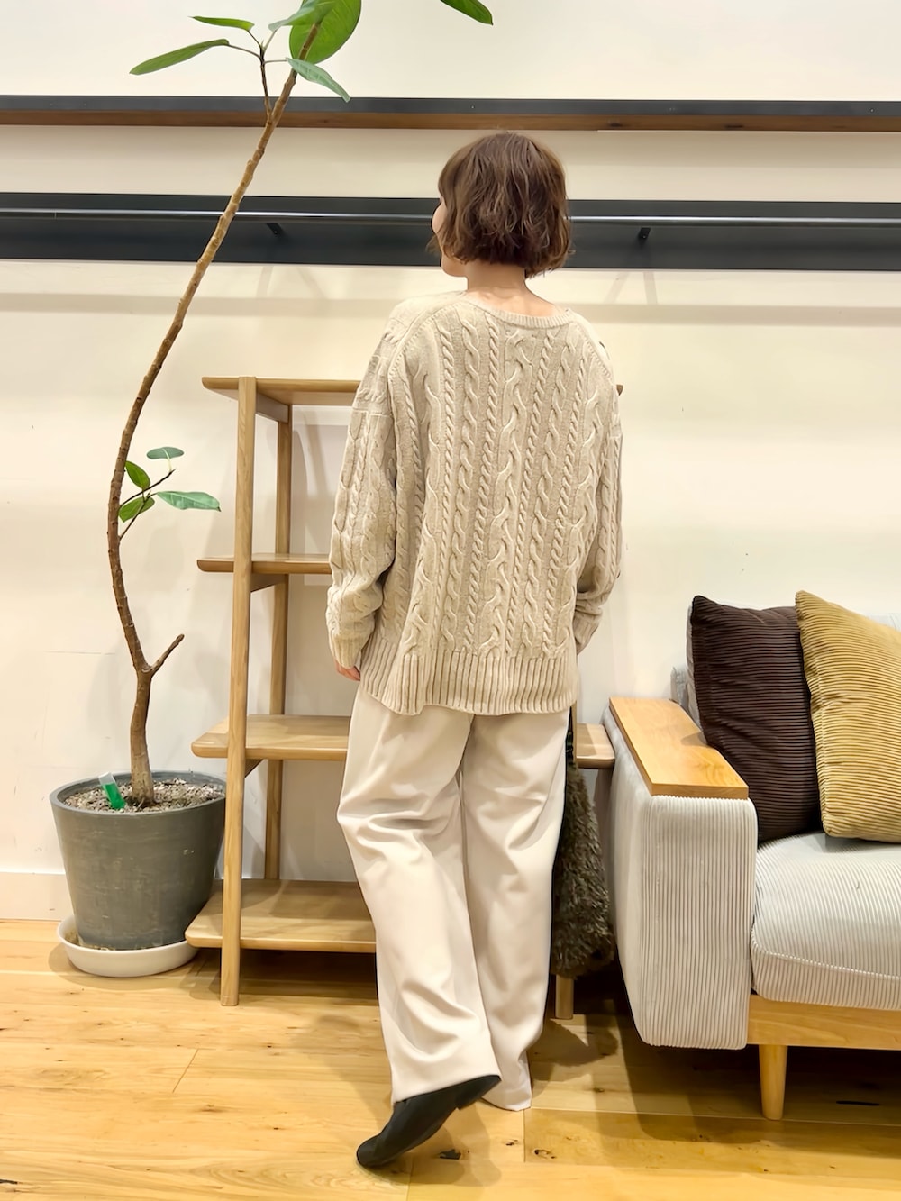 ふっくら柔らかい風合いが可愛いアラン柄ニット。