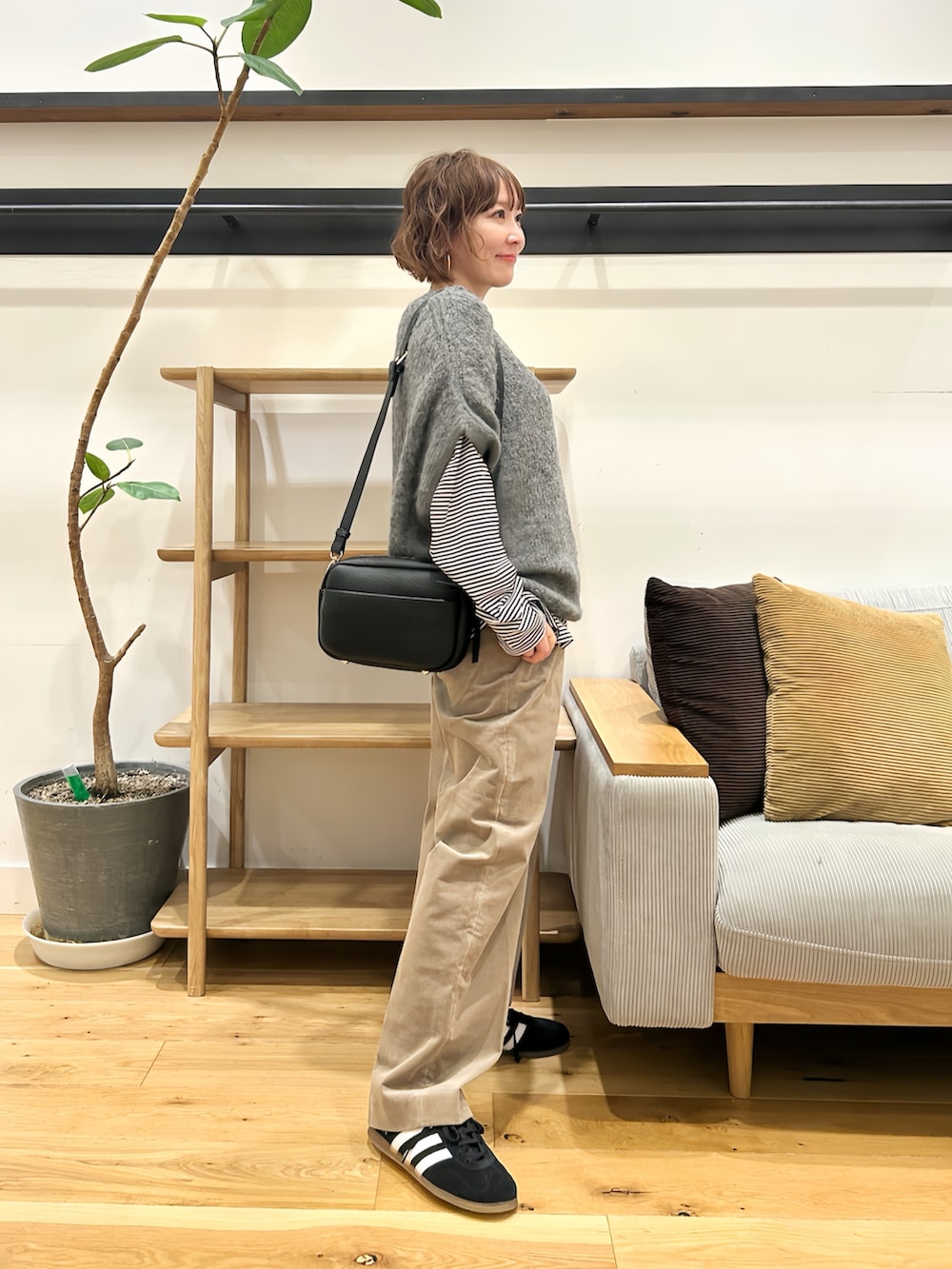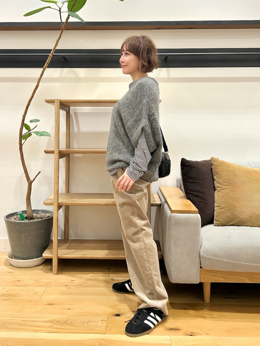 ゆるっとしたニットやスウェットに合わせるだけで、季節感のあるリラックスコーデに。
