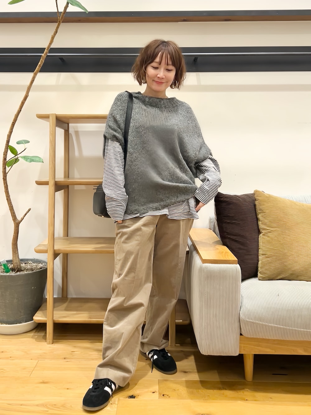 そしてピタピタにならずにゆとりがあるのでインナーにも1枚でもいい感じに着こなせます♪