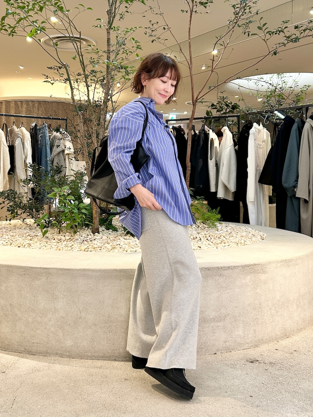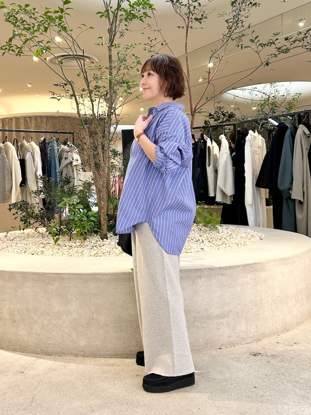 ストレートシルエットで、ラクなのにすっきり見えるのがポイントです。