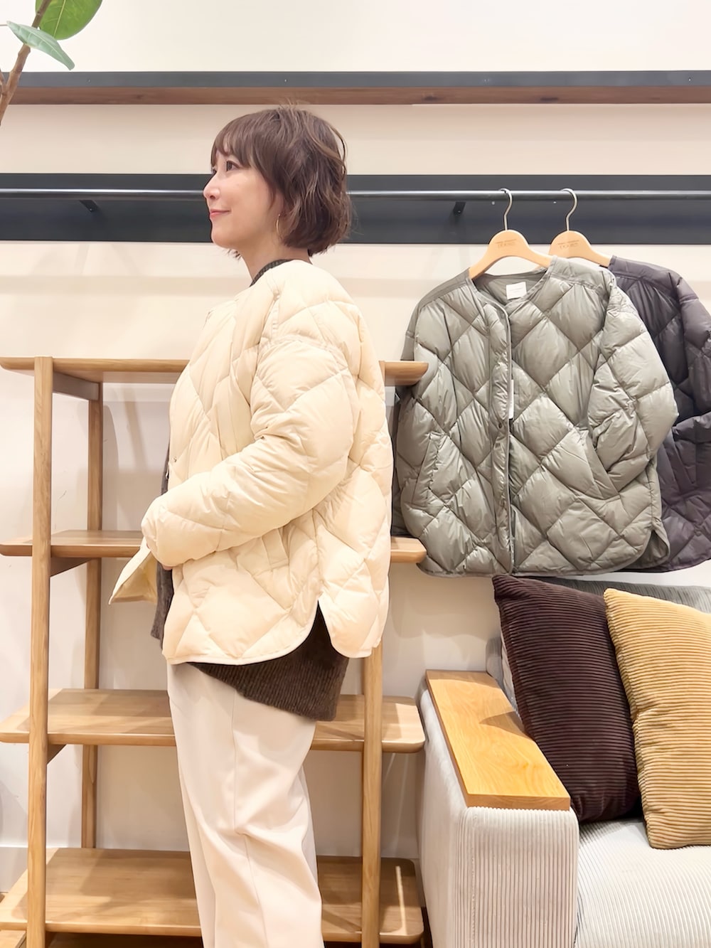 軽くてあたたかいショート丈のライトダウンキルトショートブルゾン。