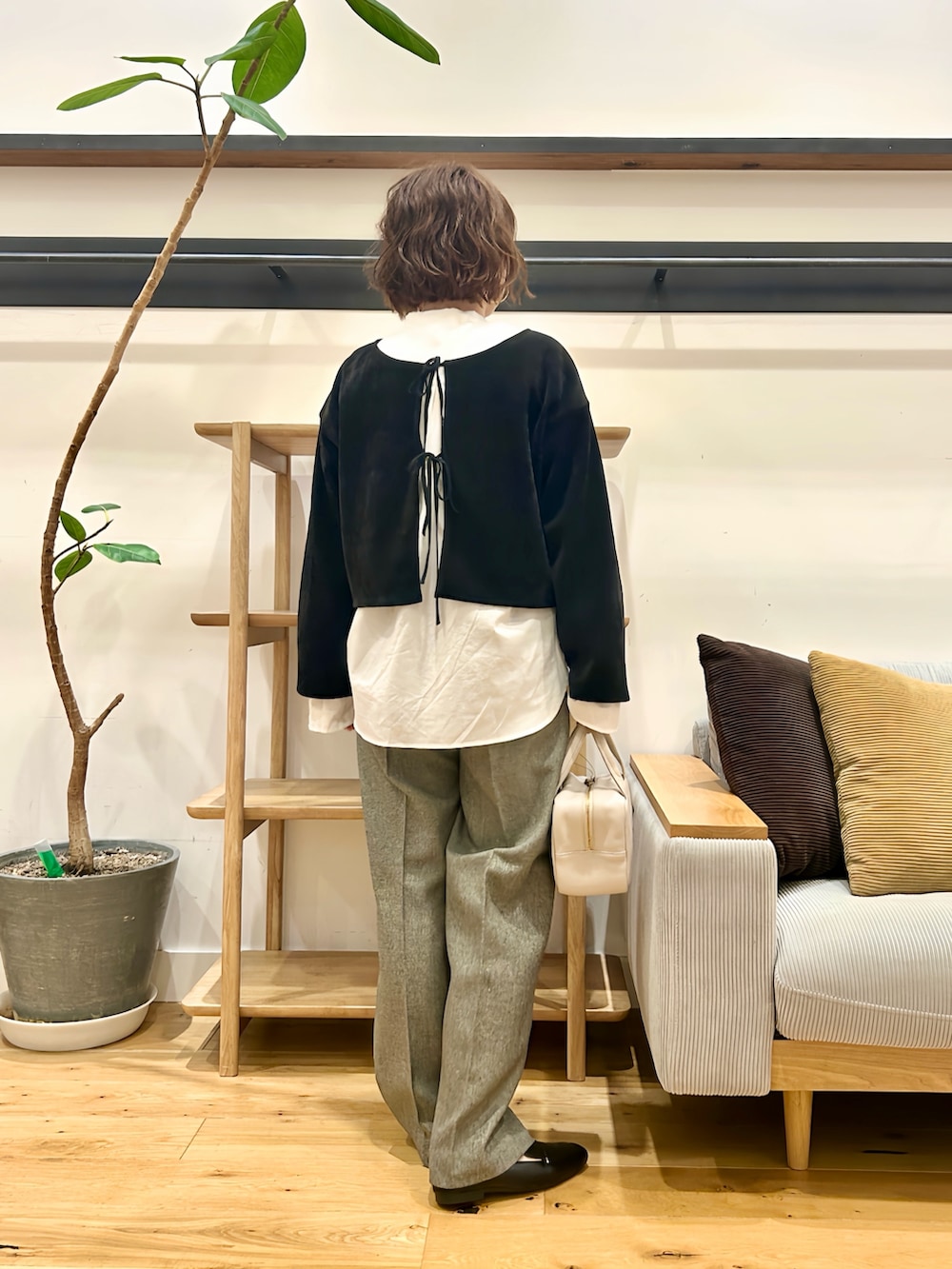 前後2WAYで使えるので、リボンを前にしてフェミニンに着ても、後ろにしてすっきり見せても◎。