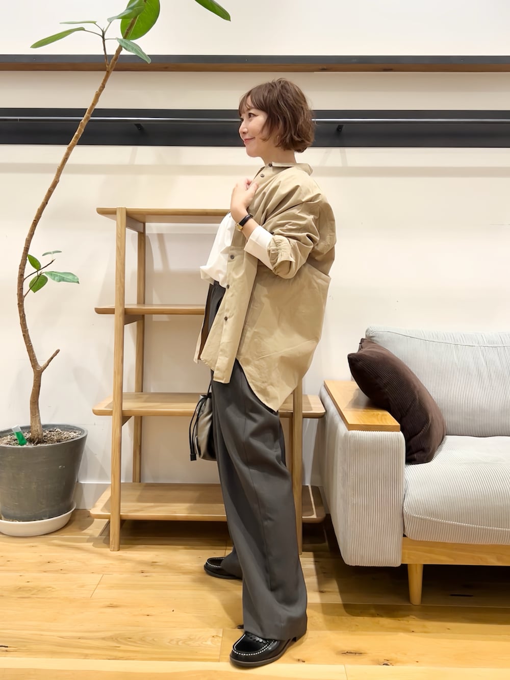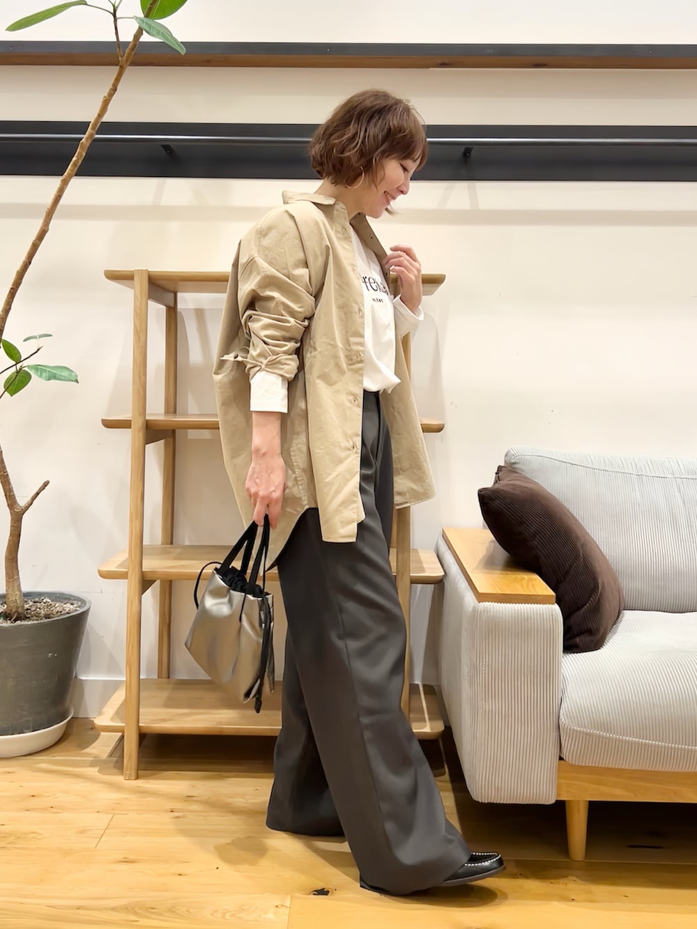 ゆるっとしたドルマンシルエットで、羽織ってももたつかず抜け感を出せます。