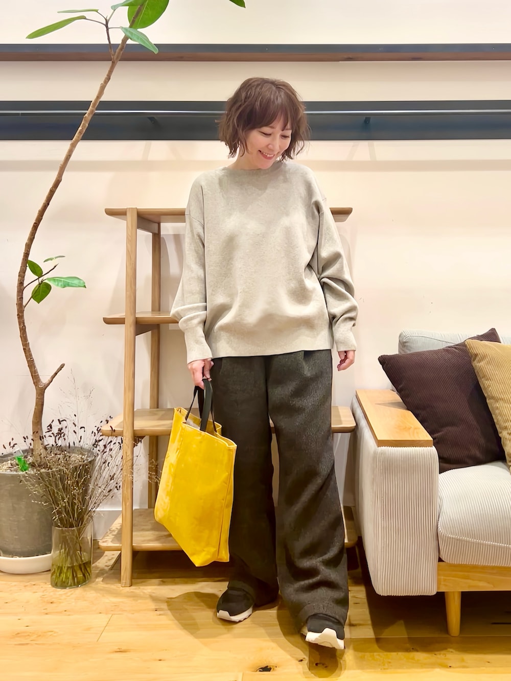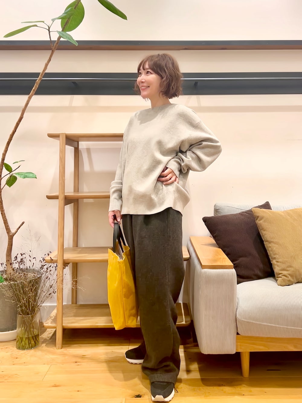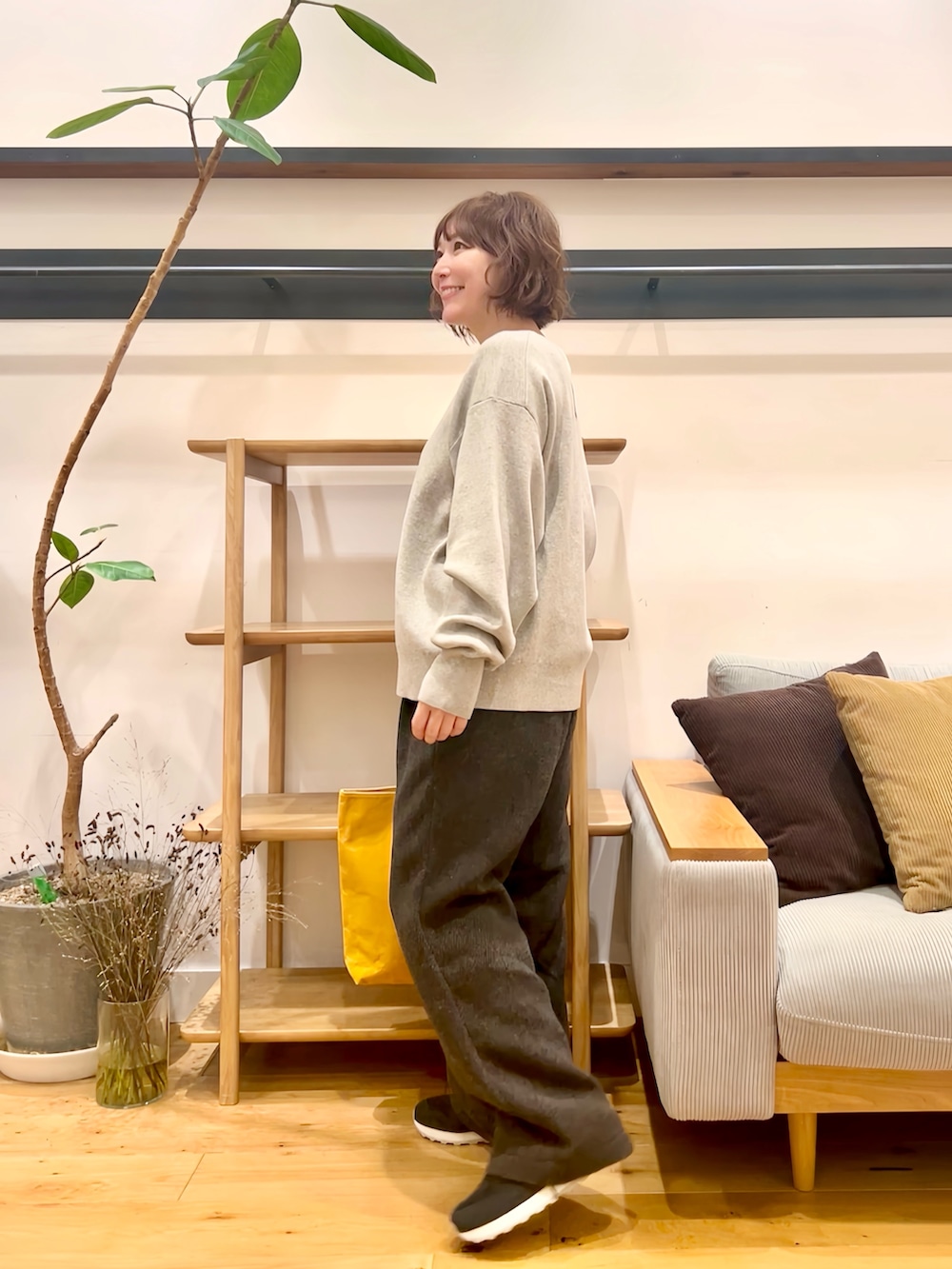 ふんわり柔らかいタッチで、スウェットみたいにリラックスして着られるニット。