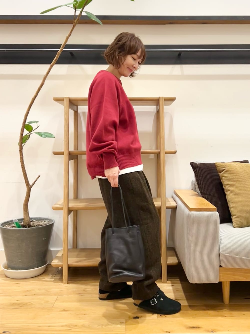 見るからにあったかそうな秋冬ムードを高めて上品さとリラックス感を両立したパンツです。