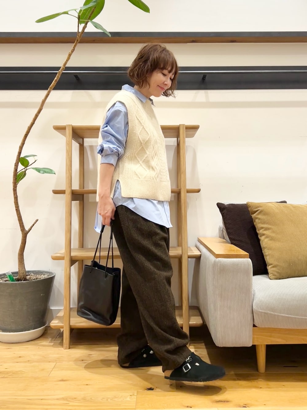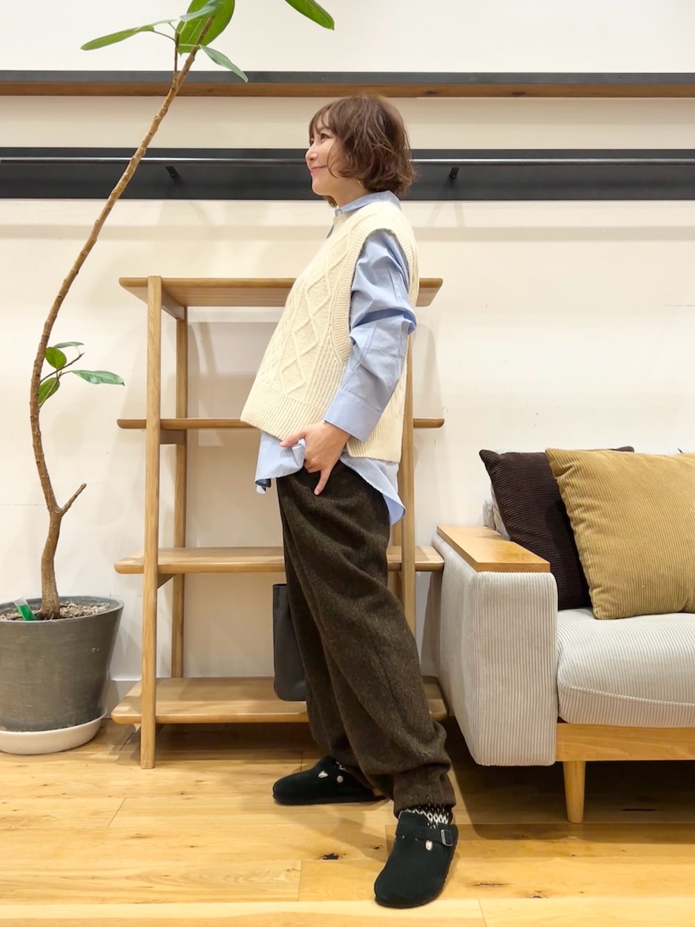 見るからにあったかそうな秋冬ムードを高めて上品さとリラックス感を両立したパンツです。