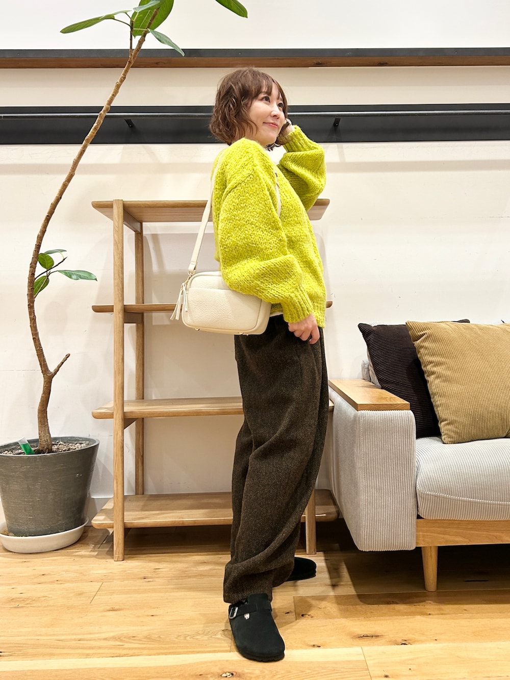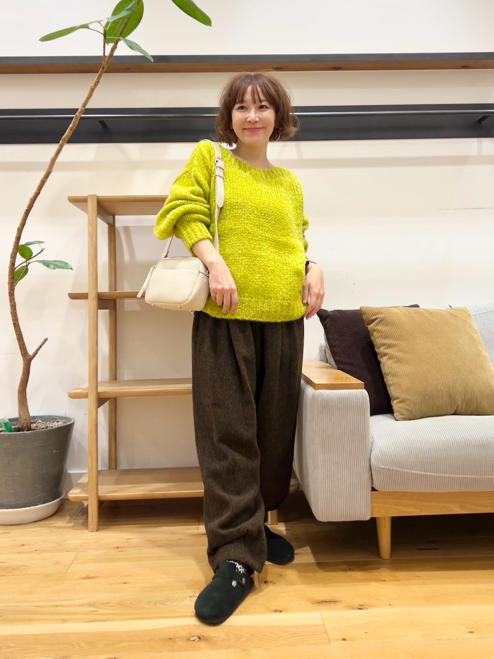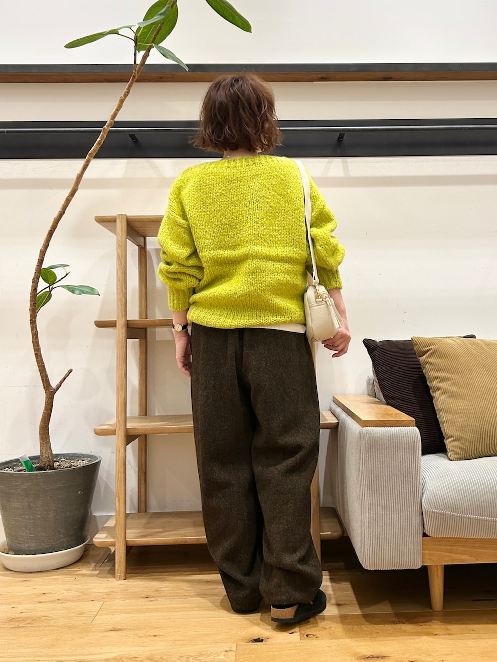 ぱっと目を惹くイエローが冬のコーデを一気に明るくしてくれるふわんふわんニット。