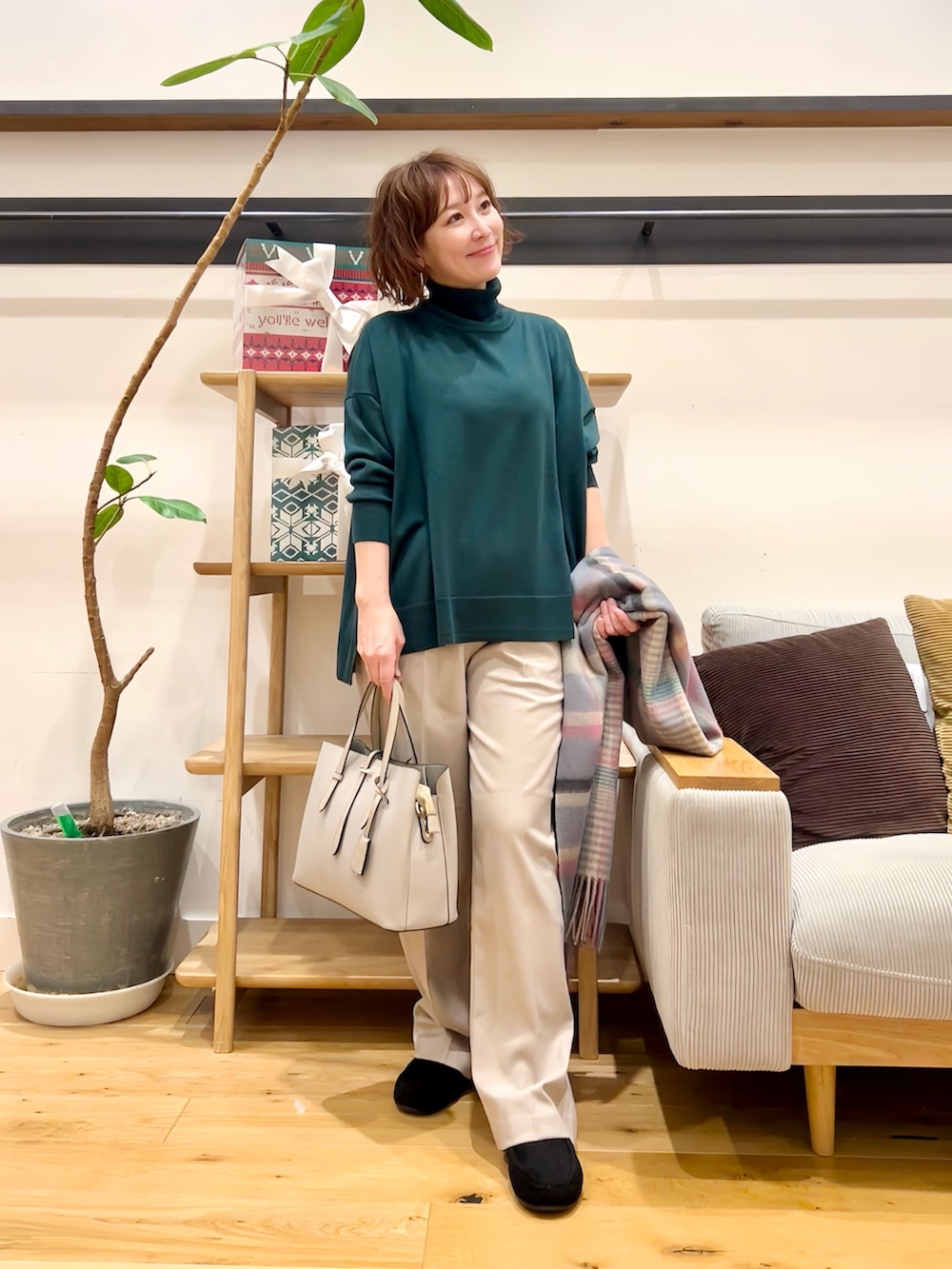ウールなのにすっきりテロンとした生地なので綺麗な落ち感で大人な雰囲気です。