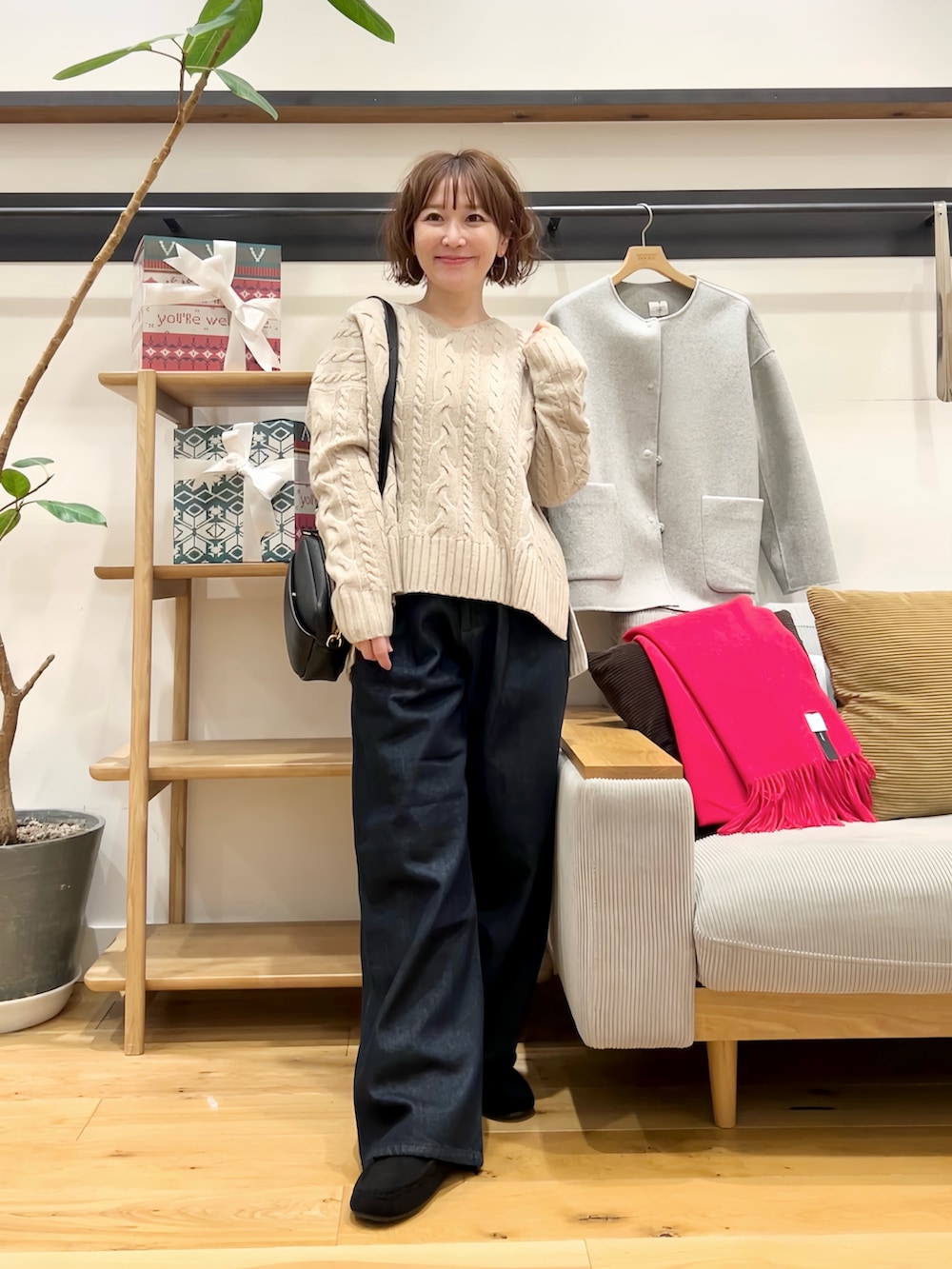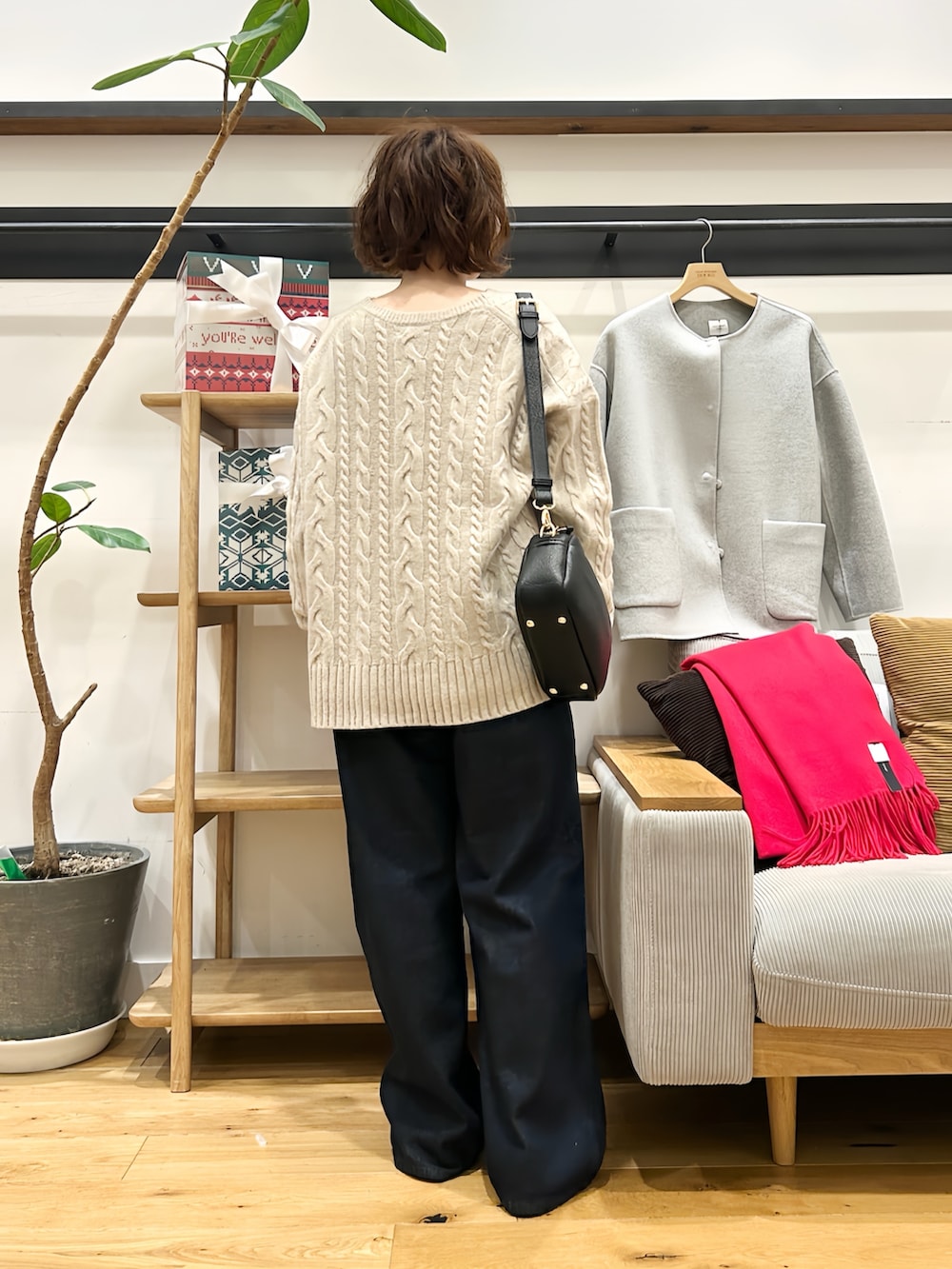 軽い着心地なのにあたたかく、デニムやスカートにも合わせやすい万能アイテム◎