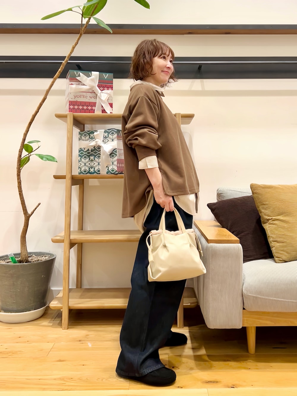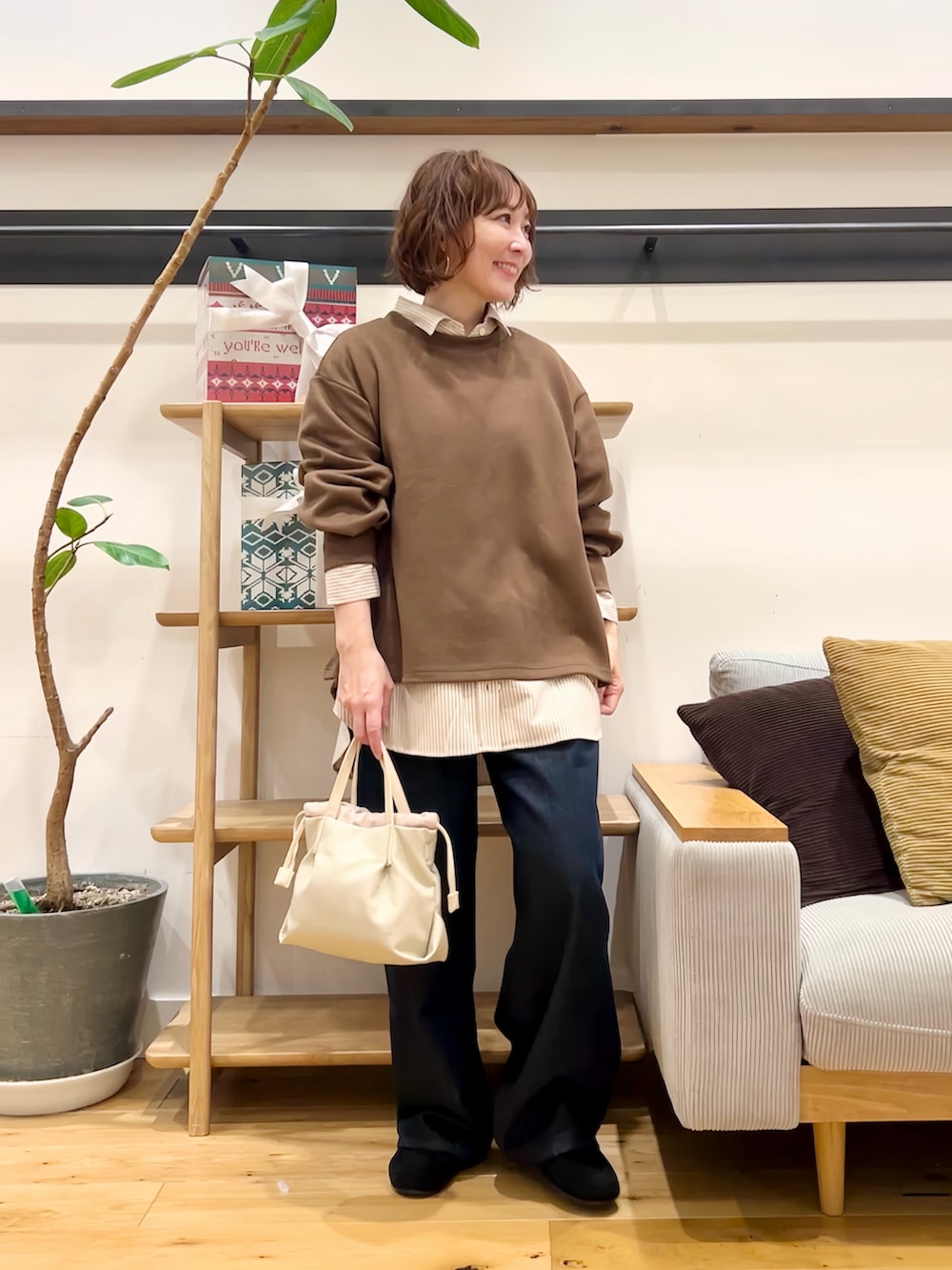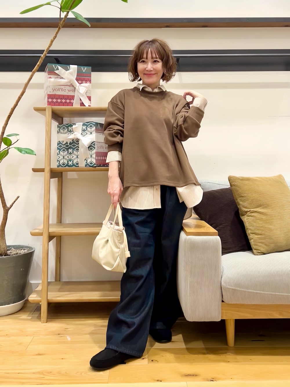 袖のタックが手元にふんわりニュアンスをつくってくれるので、カジュアルなのに女性らしく見えるのも好きなところです。
