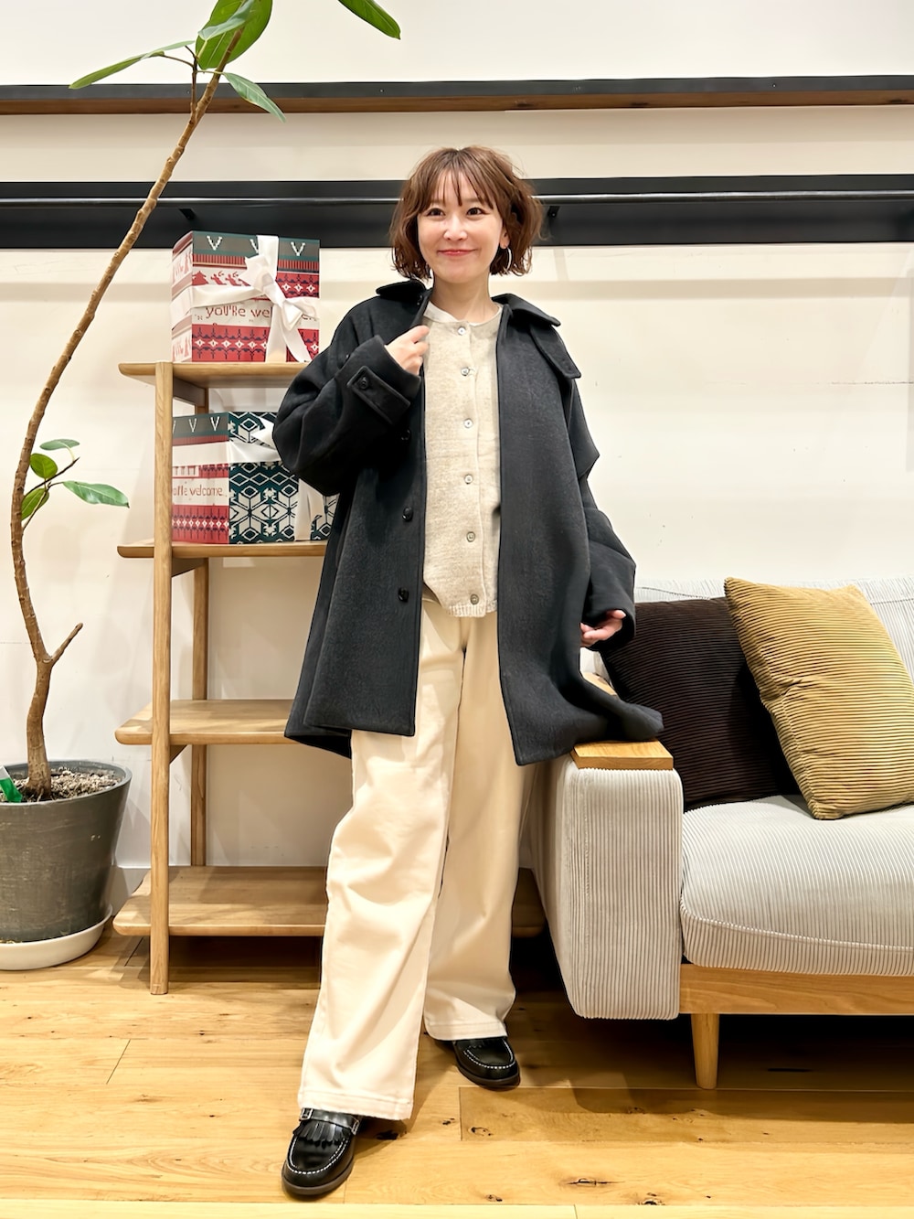 ほどよくゆとりのあるサイズ感で、厚手ニットの上からでもラクに羽織れます。