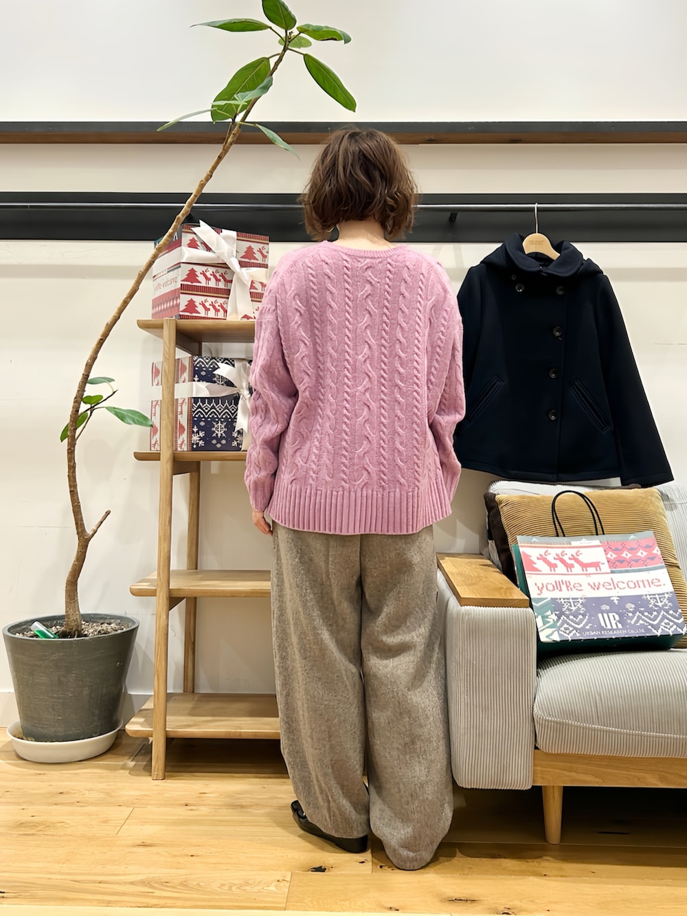 ふっくら柔らかい風合いが可愛いアラン柄ニット。