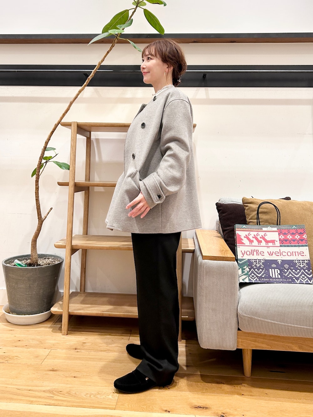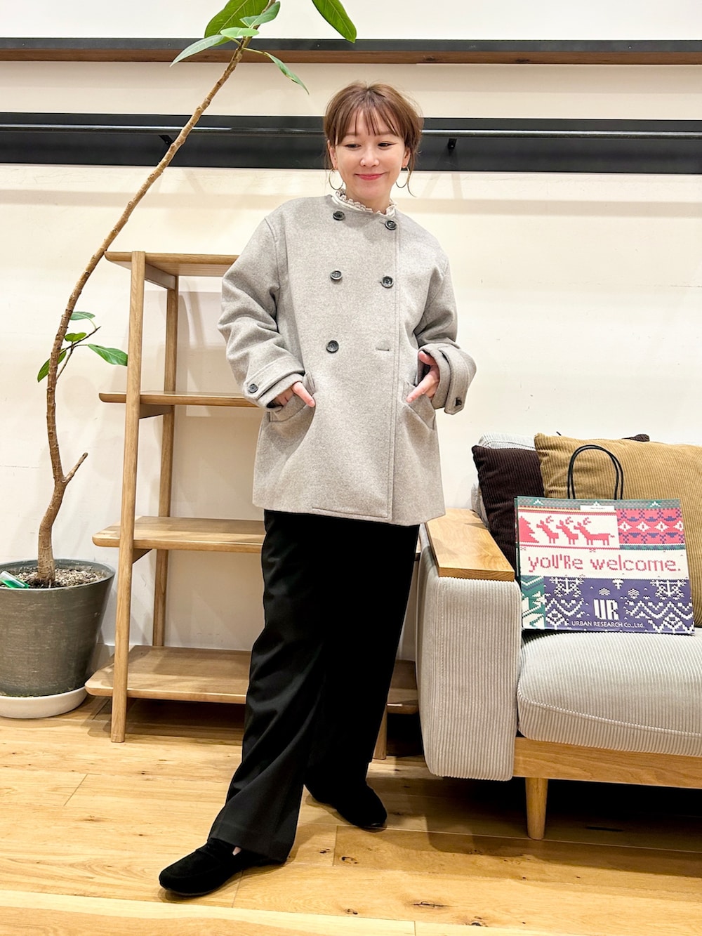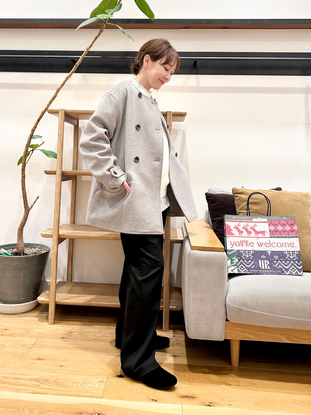 淡いカラーが冬のコーデを重たく見せず、デイリーに取り入れやすい一枚です。