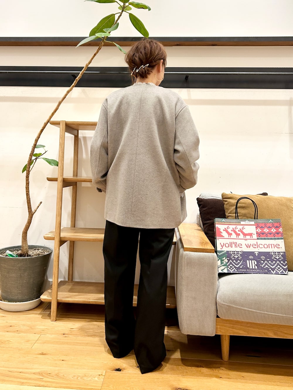 サイズ感は大きすぎず、パンツでもスカートでも合わせやすいのがポイントです。