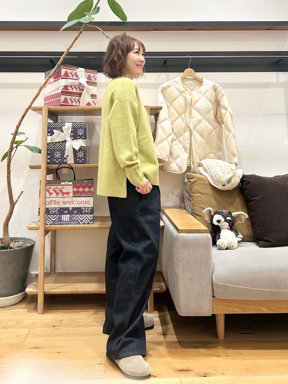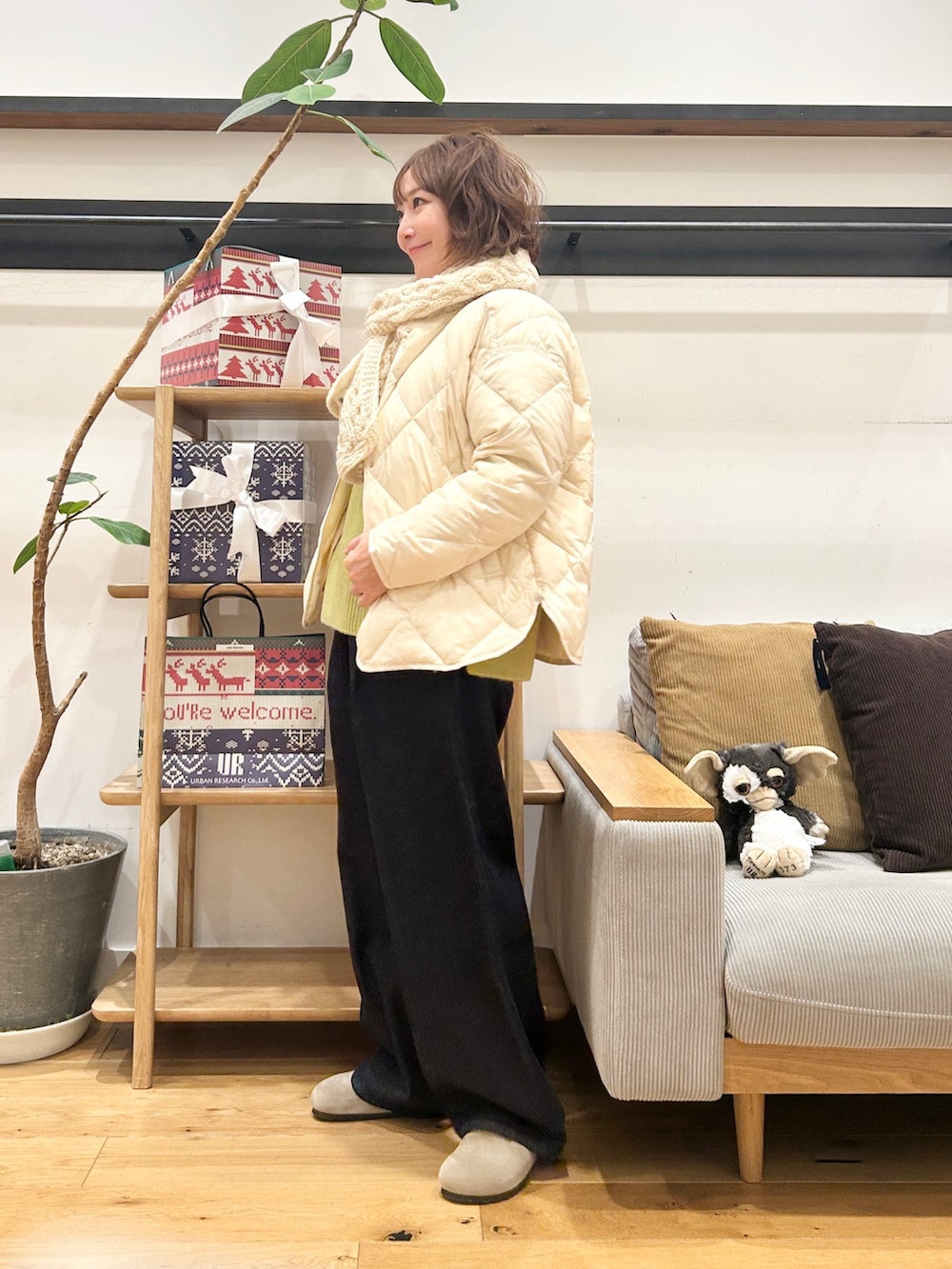 ノーカラーデザインなので、タートルやフードアイテム、マフラーとも相性よくレイヤードを楽しめます。