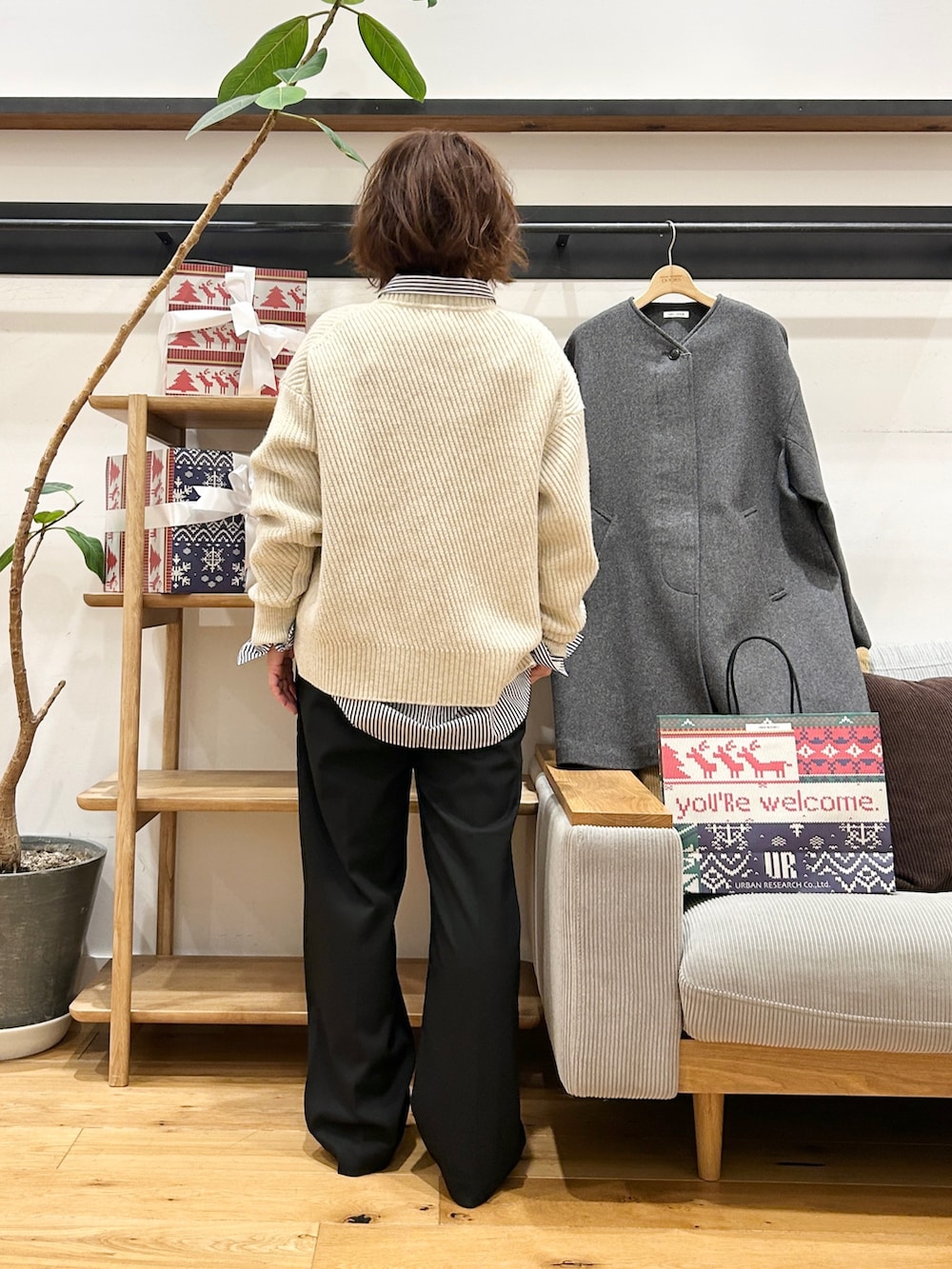 身幅にはゆとりがありつつ、サイドスリット入りで重たく見えず、抜け感のあるシルエットに。