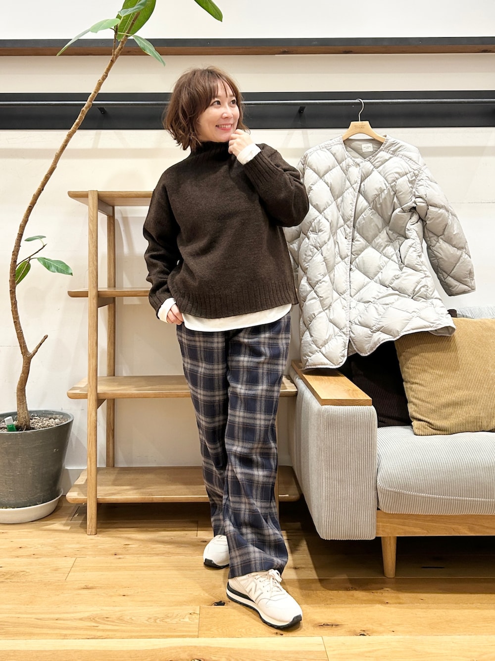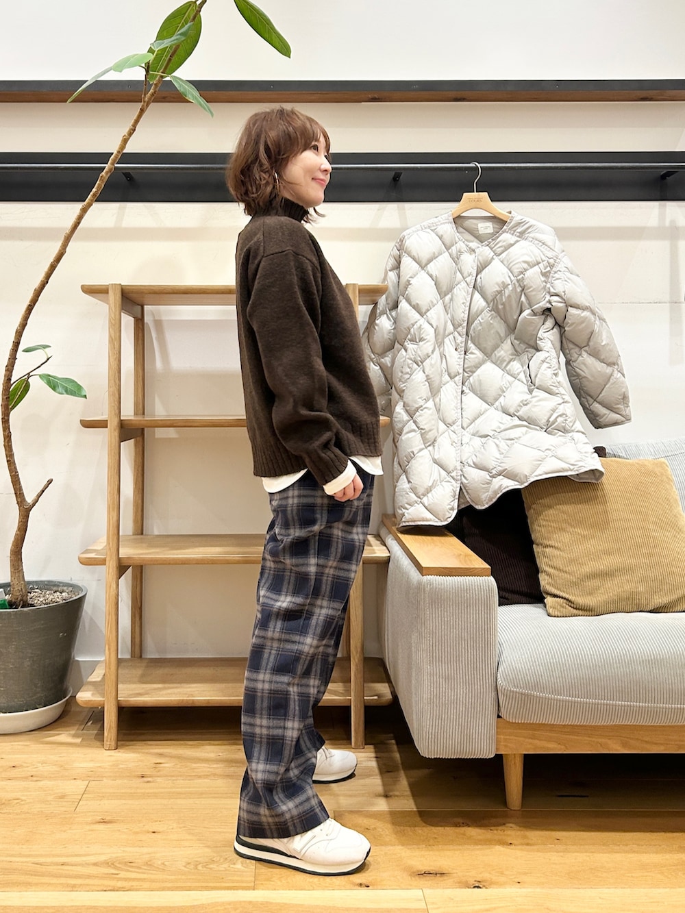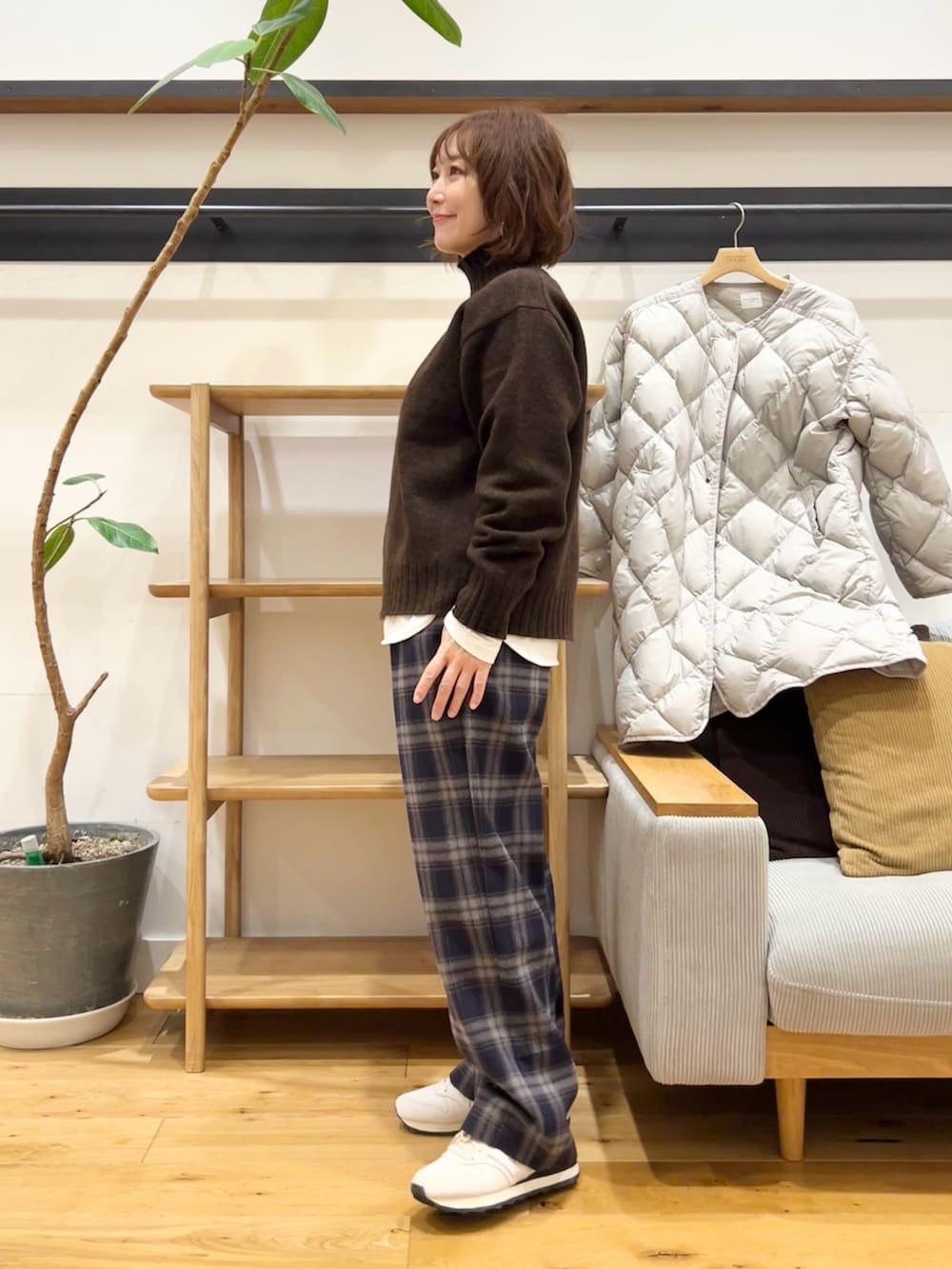 すっきり見えるシルエットなのに、中に着込めるのが嬉しいポイントです。