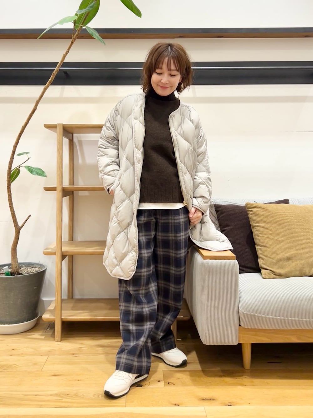 ノーカラーなのでタートルやフードとも合わせやすいです◎