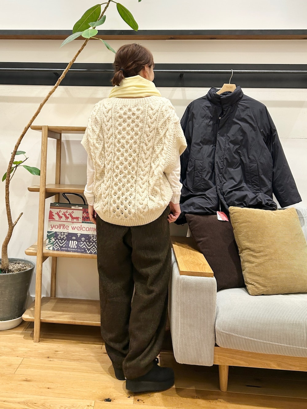手編みならではの立体感があって、シンプルなコーデでもちゃんと雰囲気が出るニットベスト。