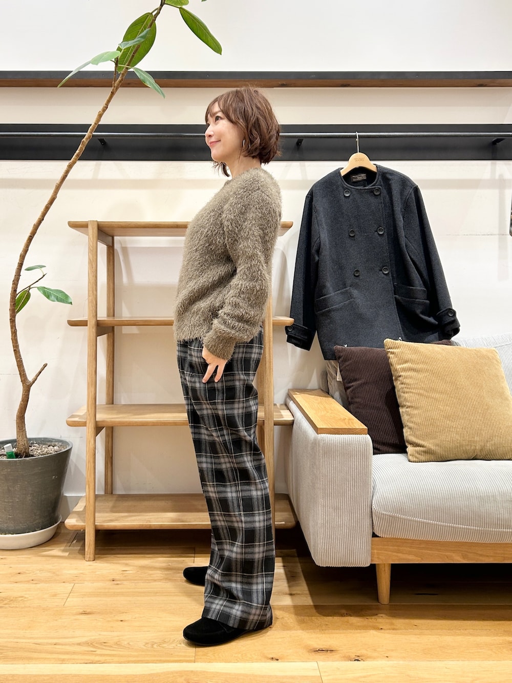 ふわっとしたシャギー感が可愛いけど、甘くなりすぎない大人ニット。