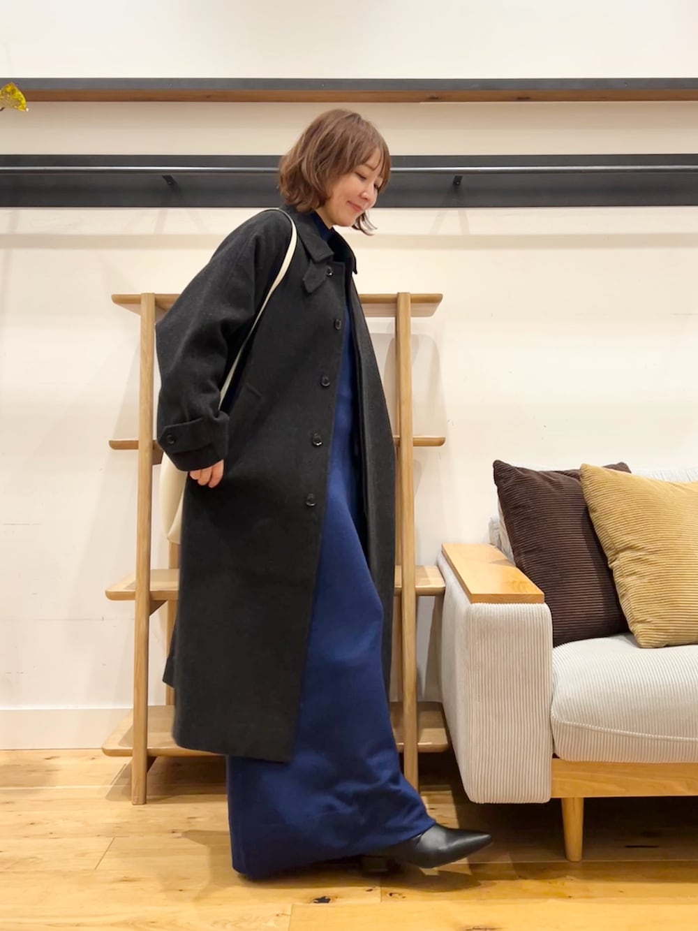 見た目はきちんとしているのに、着るととっても柔らかくて長さもあるのに軽くてとっても着やすいコート。