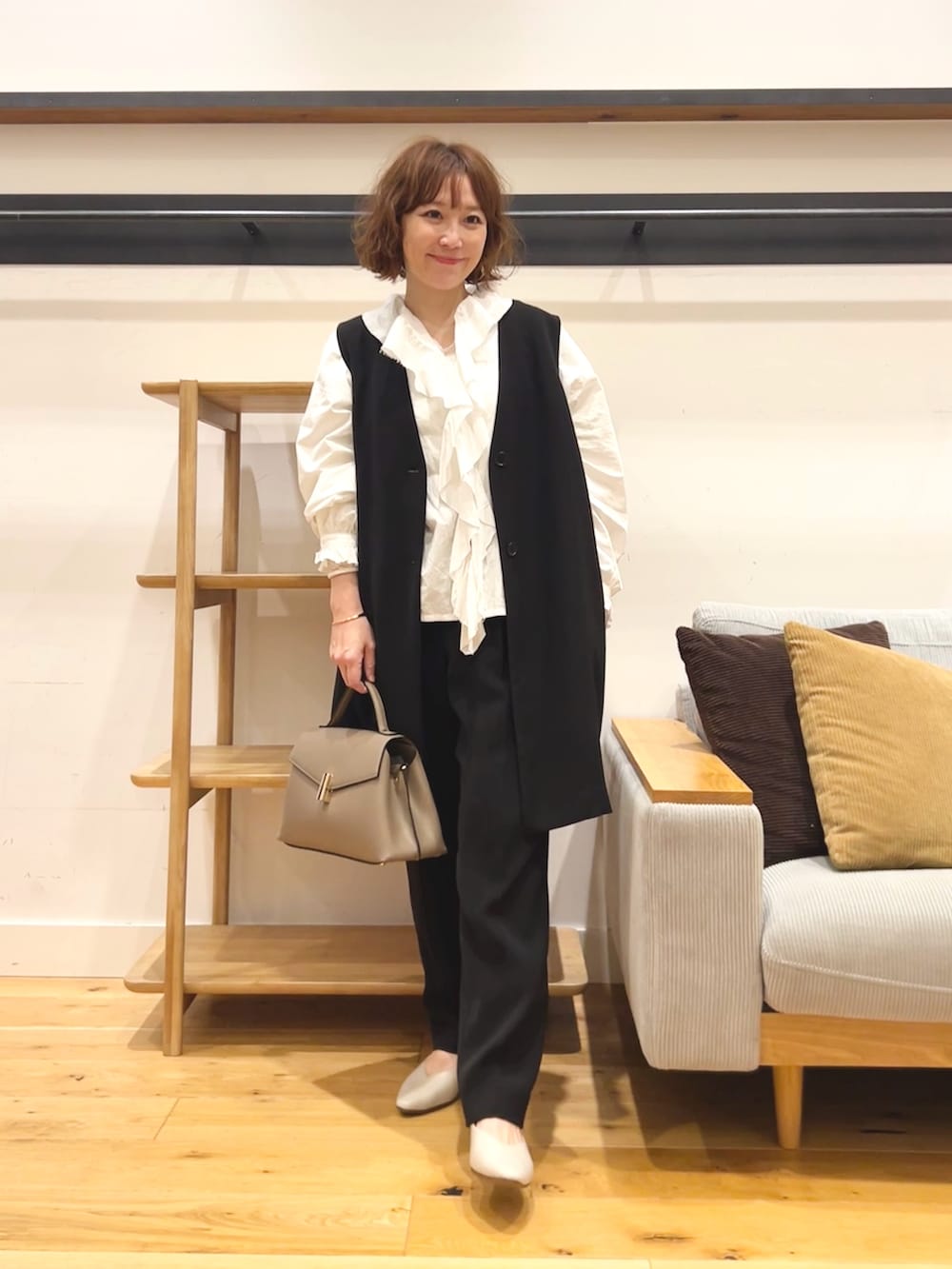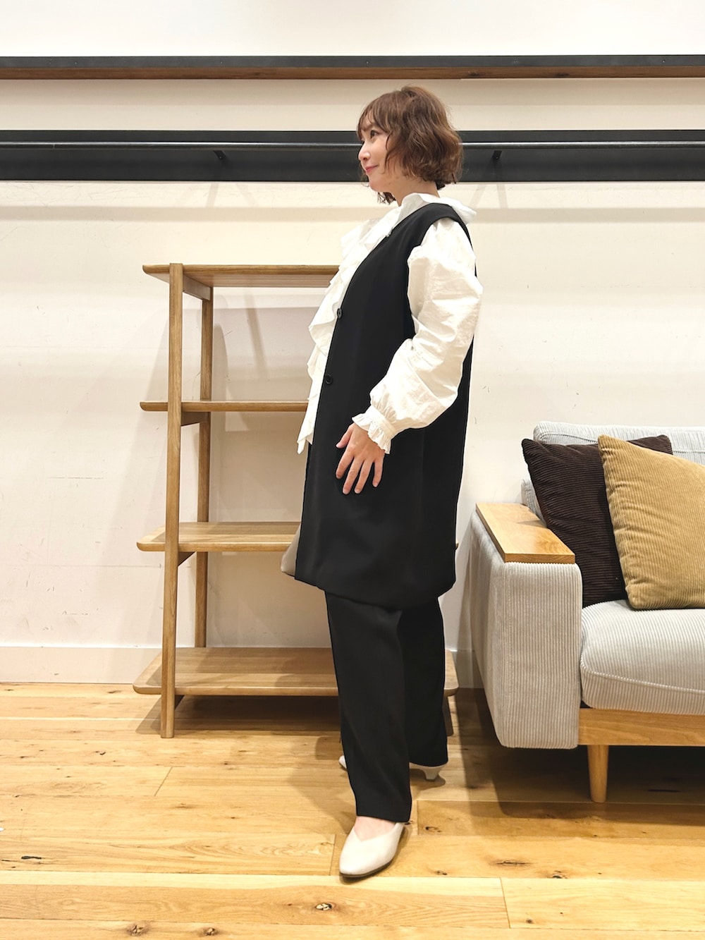 長さはありますが重たくならず、パンツ合わせでも軽やかな印象です。