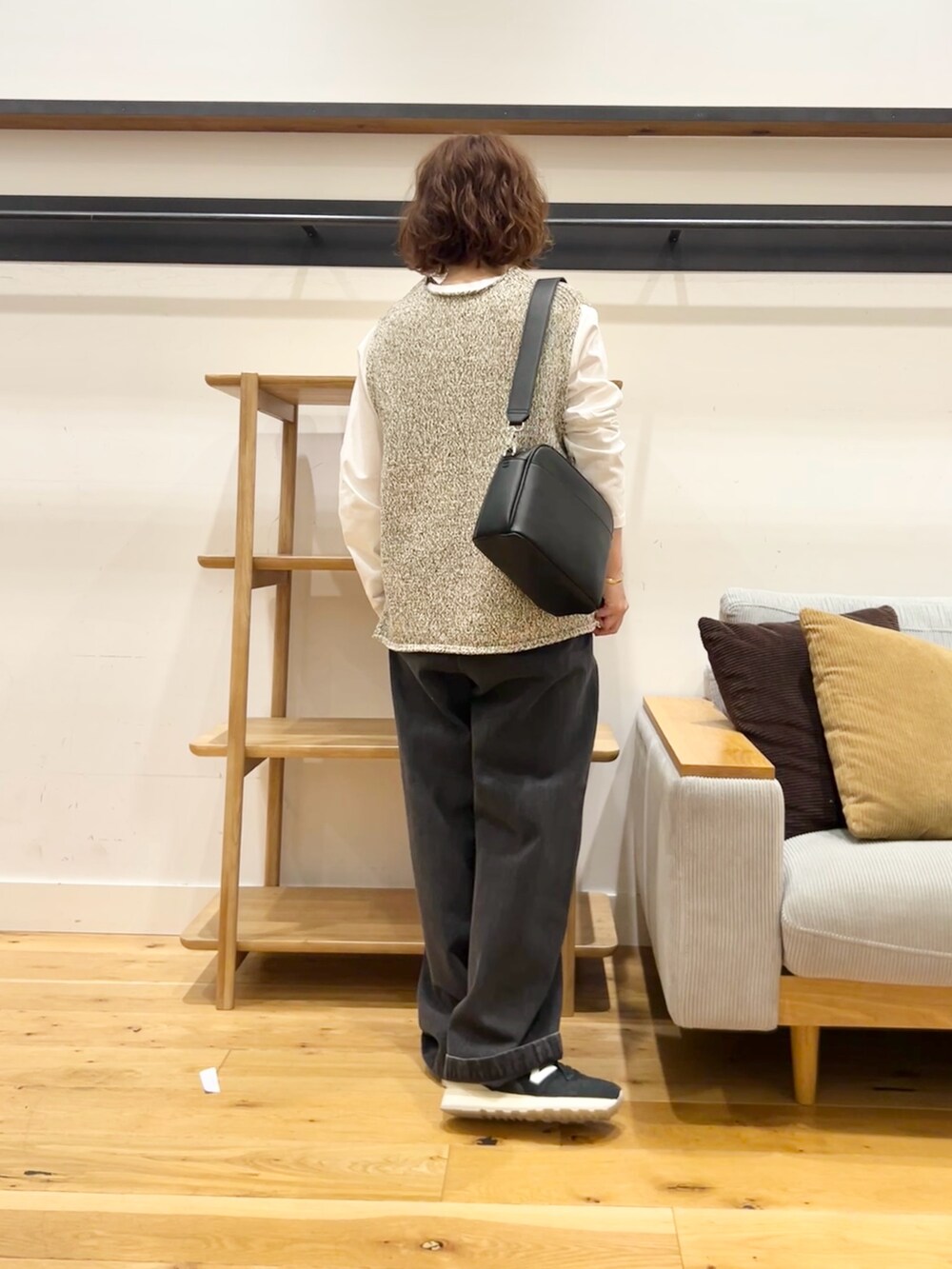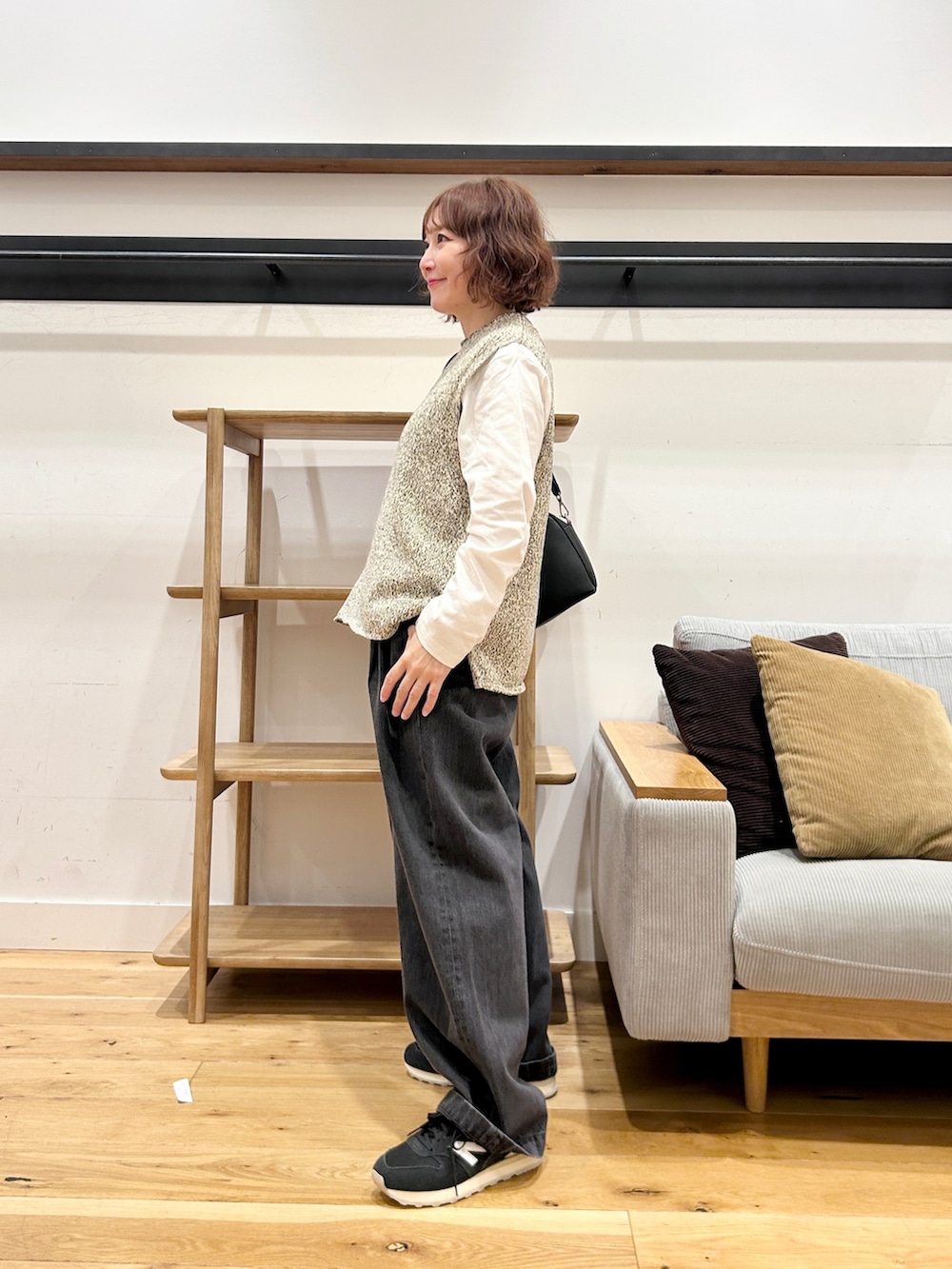 シンプルなシャツやロンTにこのベストを重ねるだけでいい感じに。