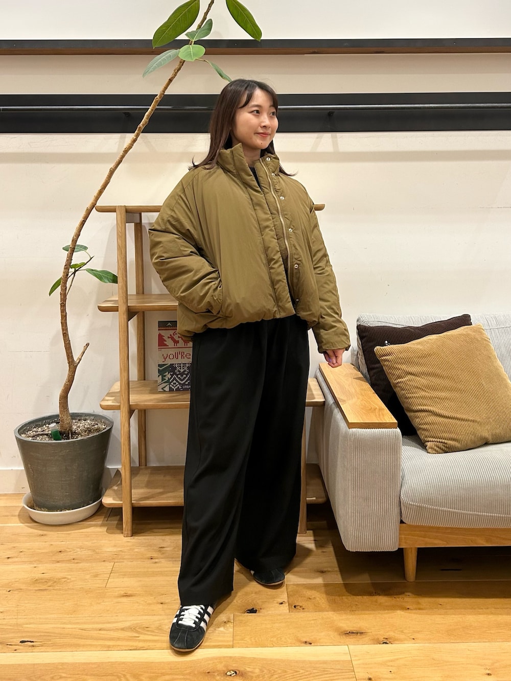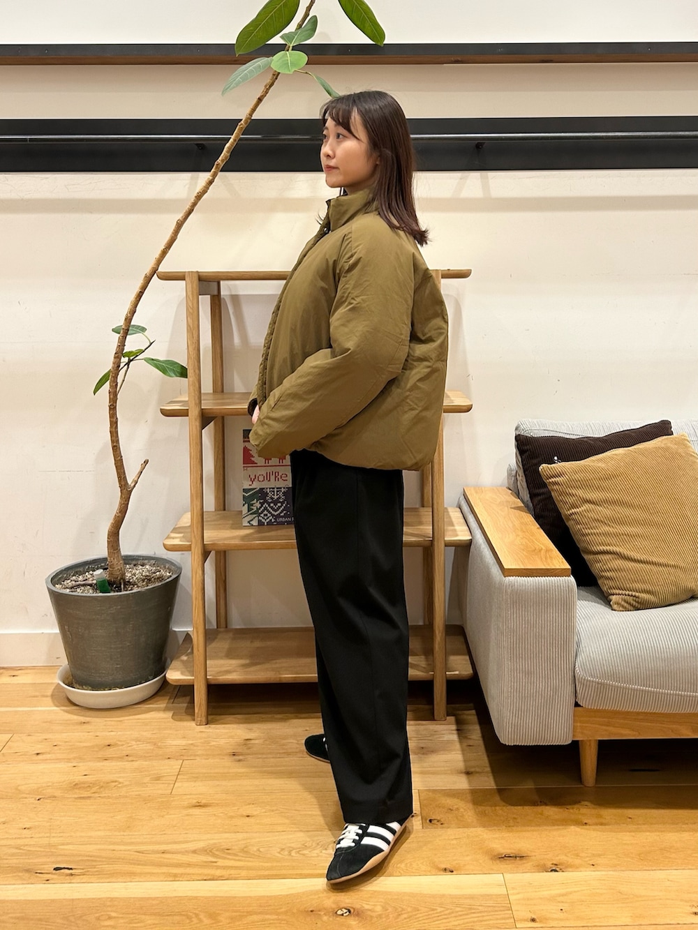 スタンドカラーダウンブルゾンは、スタイルよく見えるコンパクトな丈感で、おしゃれにダウンを取り入れやすいアイテムです。気になりやすい肩や袖あたりのボリュームですが、身体の厚みを増しすぎることなく着られるのでおすすめです✨