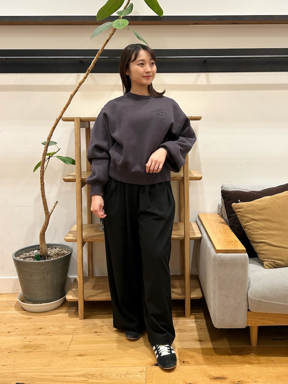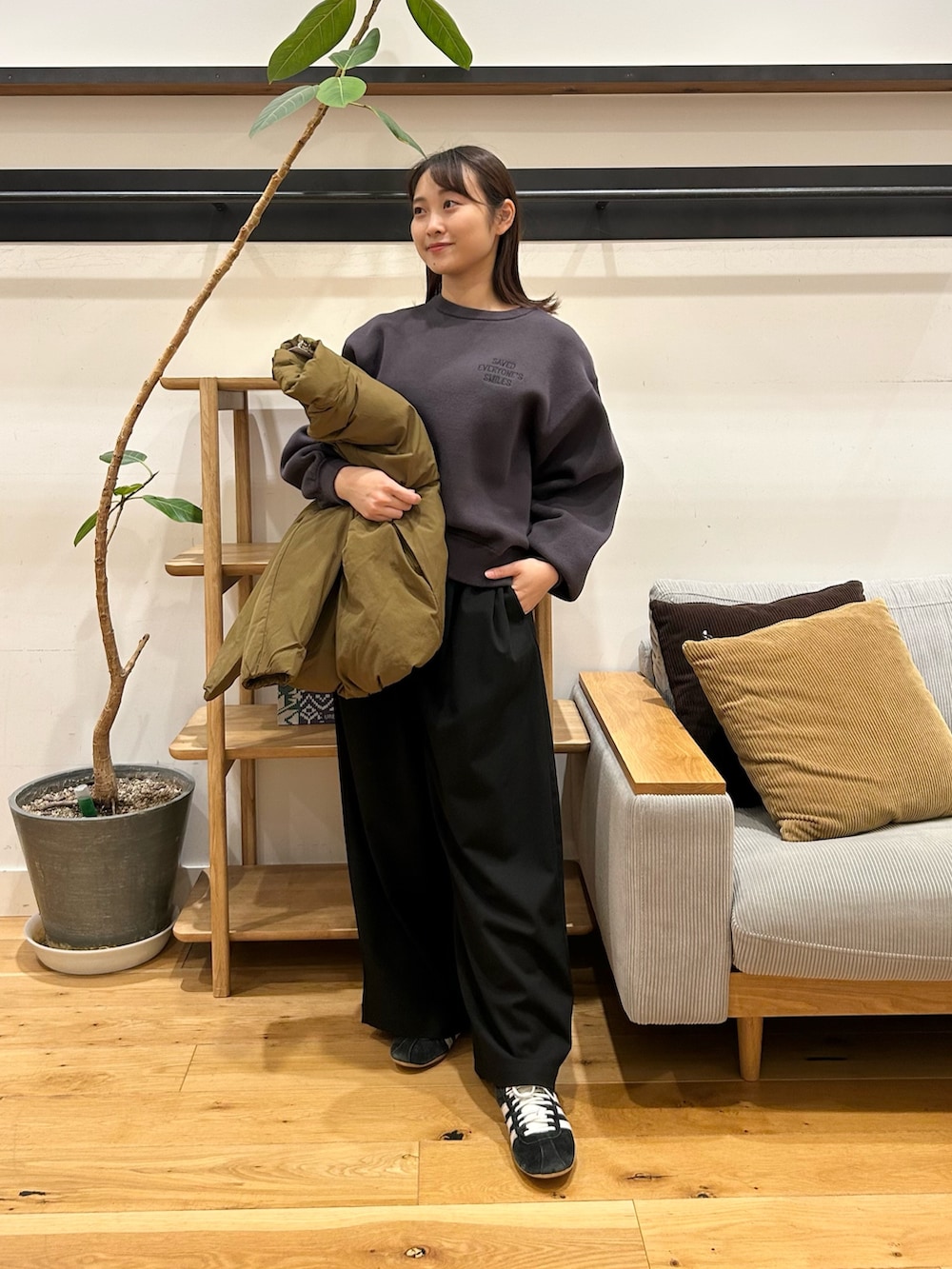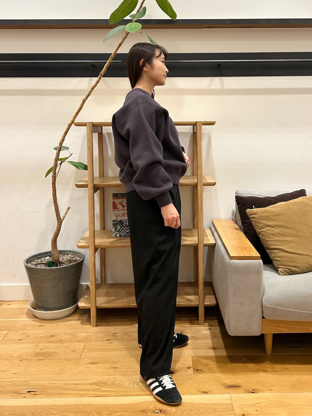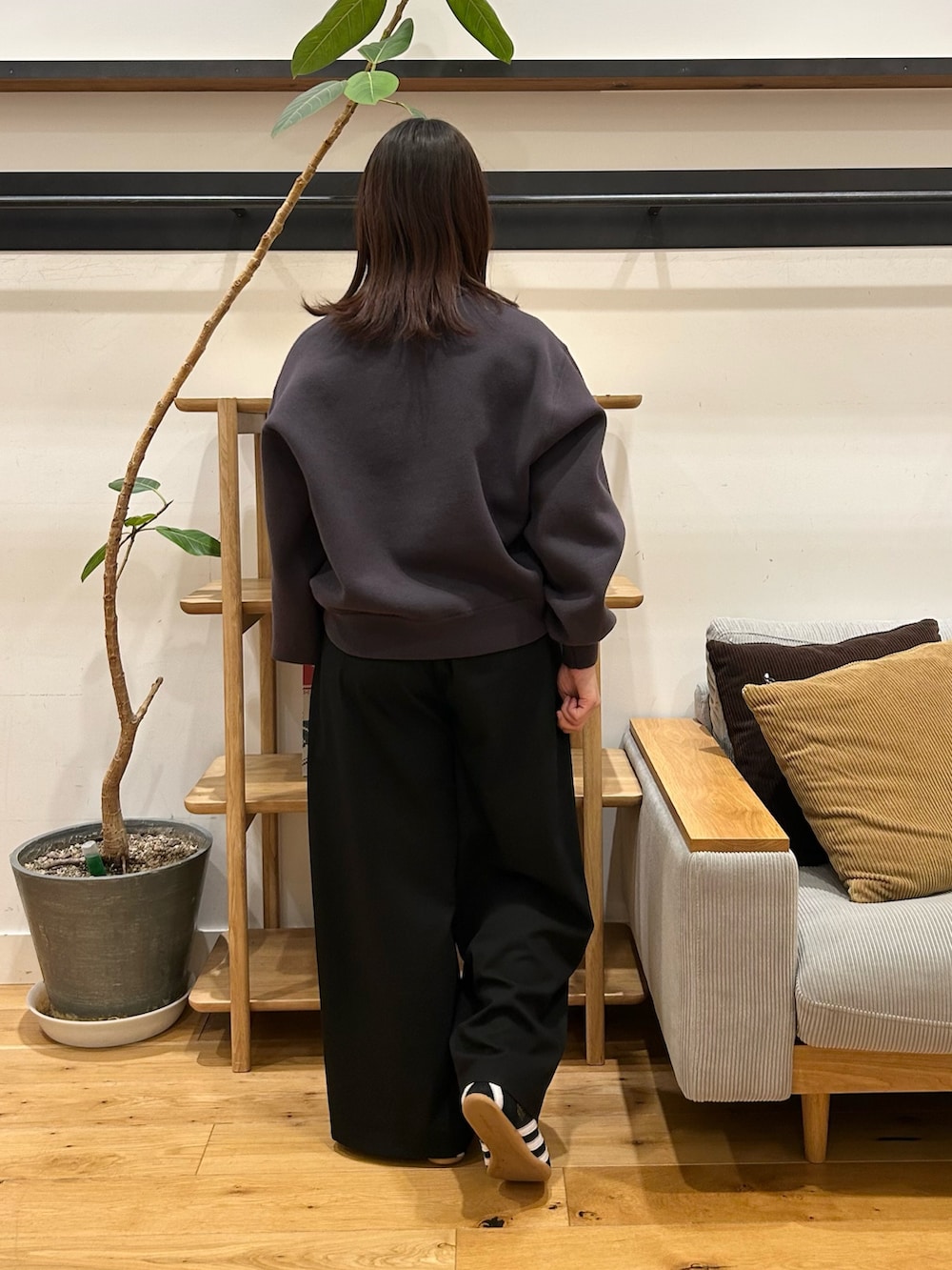 ウールライクツータックワイドパンツは、個人的にリアルバイした名品です👀ワイドで身体のライン拾わないのに落ち感が綺麗で太く見えないシルエット、最高です。