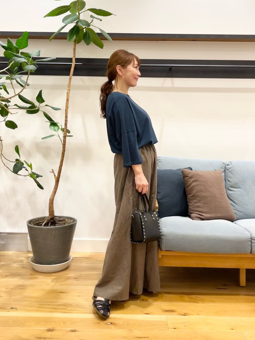 袖はゆったりしてるのでゆるっとはしてますが肩の落ち感が綺麗で、もしかしてこれは華奢見え効果もありなんじゃないでしょうか♪