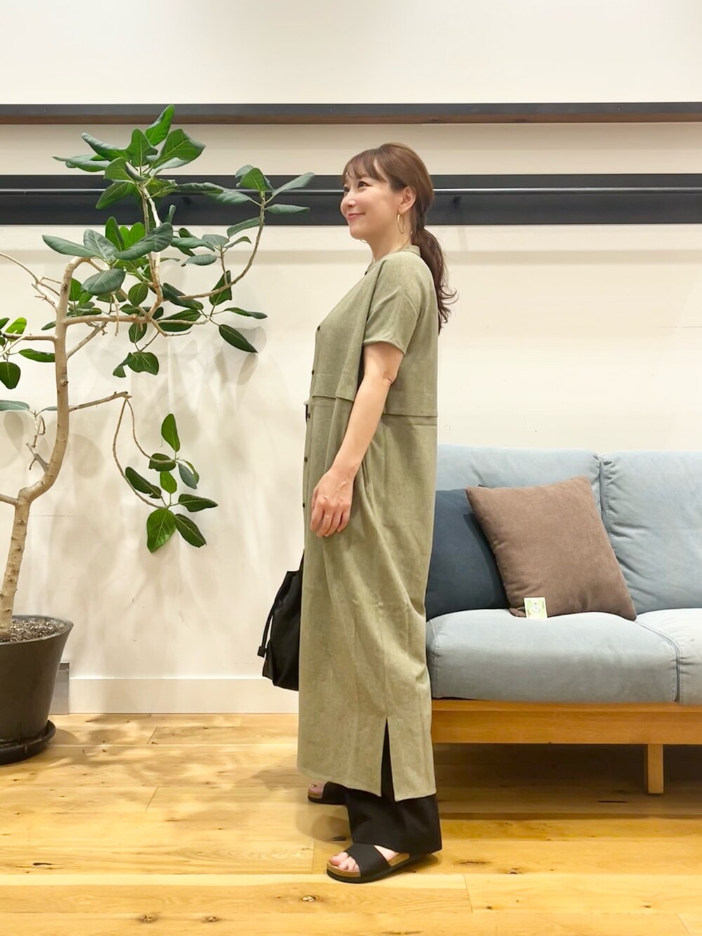 「イージーケア」「接触冷感」「UVカット」機能、と暑い夏にぴったりの素材なのですが、生地の絶妙な色味や雰囲気から、まだ暑さが残る晩夏にもいい感じに着ていただけると思います♪