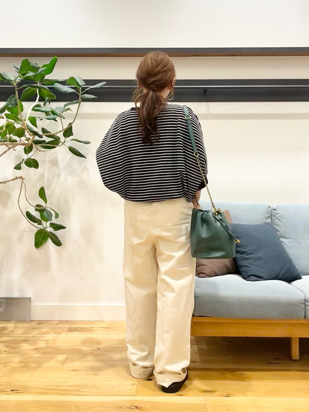 ボトムスにはかぐれのコットンデニムイージーパンツを合わせました。