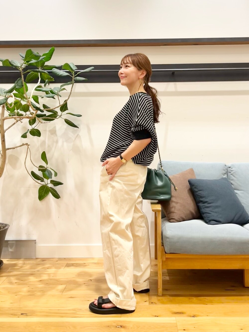 動きやすくシンプルで合わせやすく、やさしいナチュラルカラーが可愛いパンツです♪