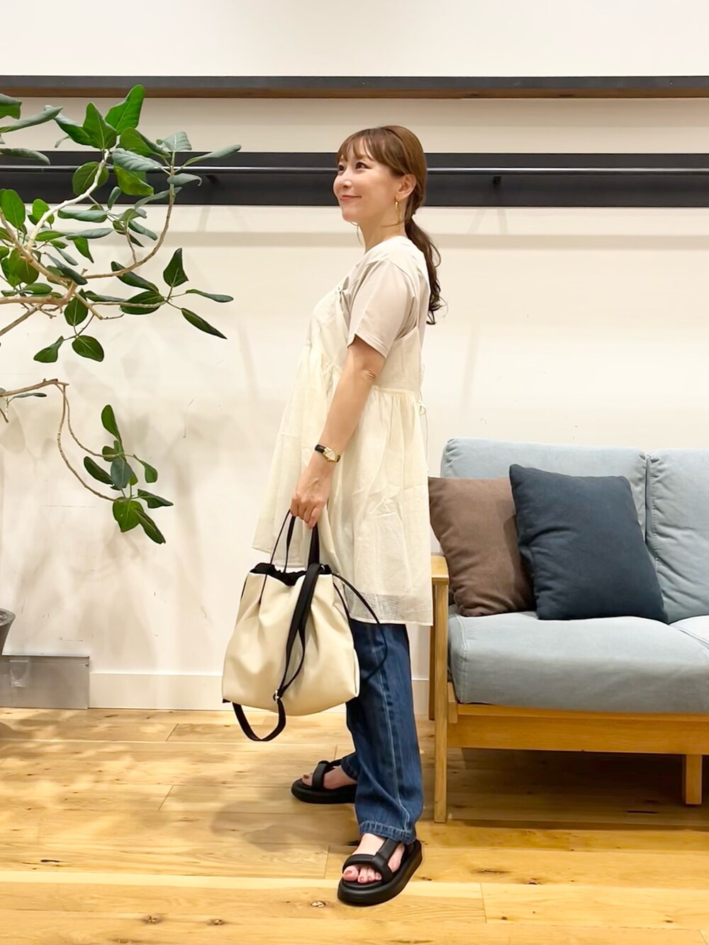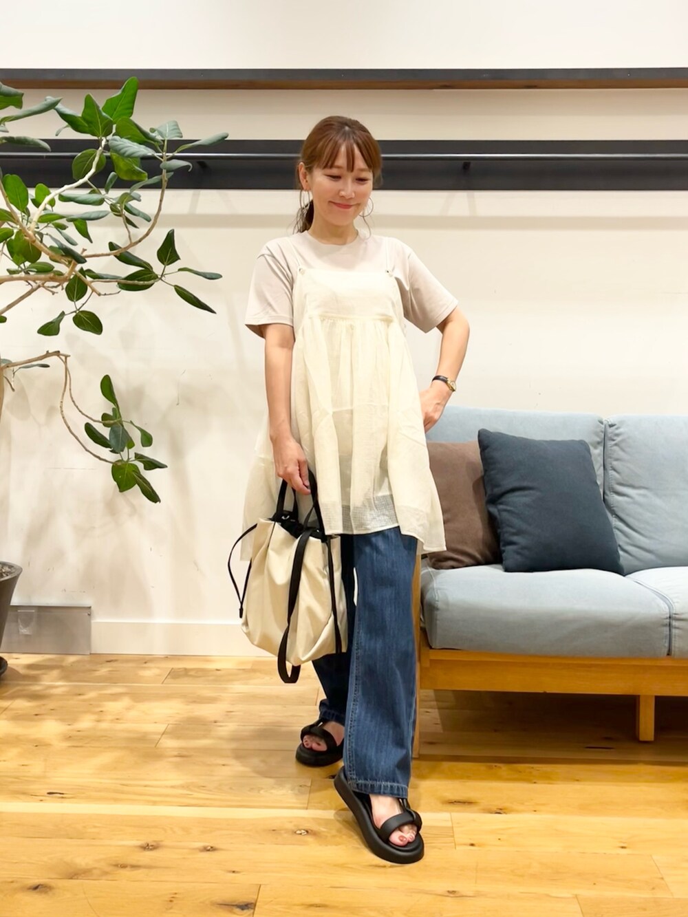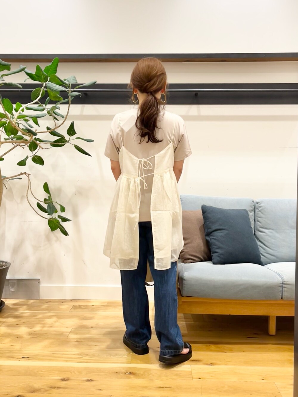 サロペットの中や、上から何か羽織ったりする時にももたつかずに着れるので一枚あるとかなり使い勝手の良いアイテムです!◎