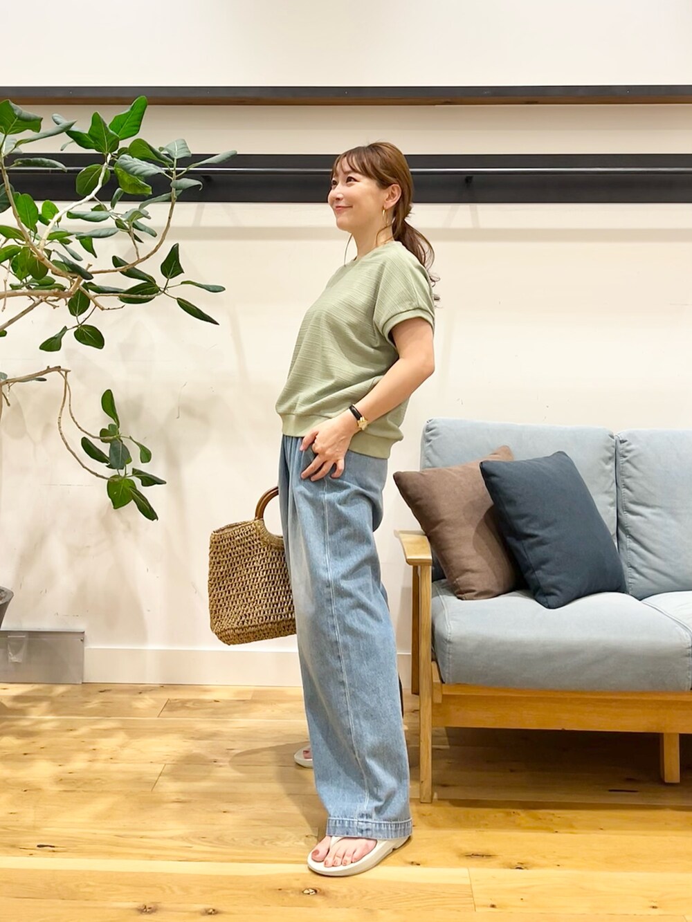 かぐれのフェードデニムイージーパンツ、色あせ具合とかシルエットとかもう何合わせてもいい感じになってしまうこちら。